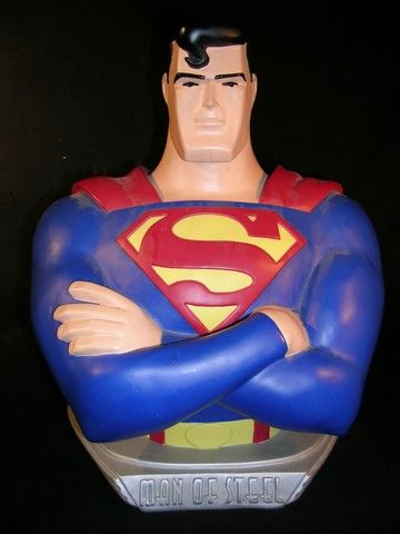 Superman Bust used as set decoration in the hit series "Seinfeld." But is made of hard plastic and labeled "Man of Steel." (18x15x11)