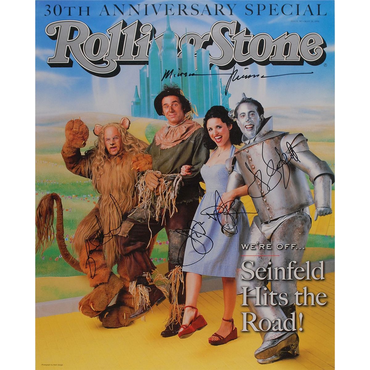 Color 18 x 22.5 Rolling Stone poster of the Seinfeld cast dressed in Wizard of Oz costumes, signed in black felt tip by Jerry Seinfeld, Jason Alexander, Michael Richards, and Julia Louis-Dreyfus. Rolled and in fine condition.