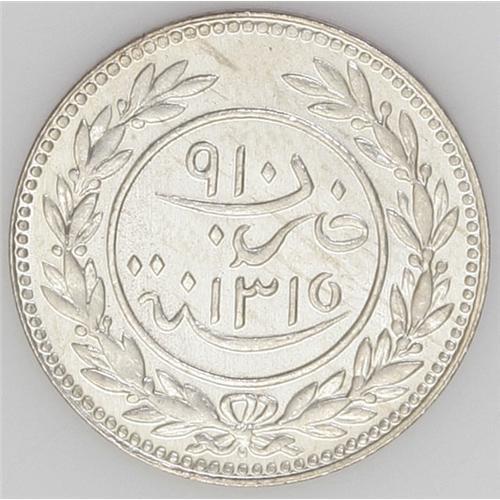 <B>Seiyun & Tarim. Heaton Mint Proof Trio, </B></I>KM-Y1-2-3, 6-12 and 24 Chomsihs 1315AH (1897). The 6 Chomsihs has a tiny toning spot but is otherwise choice Proof. The 12 Chomsihs is clearly a Specimen strike, but is not as reflective as the other two denominations. The 24 Chomsihs is choice Proof. A scarce and very desirable set from this tiny outpost in the Hadramaut region of Yemen.