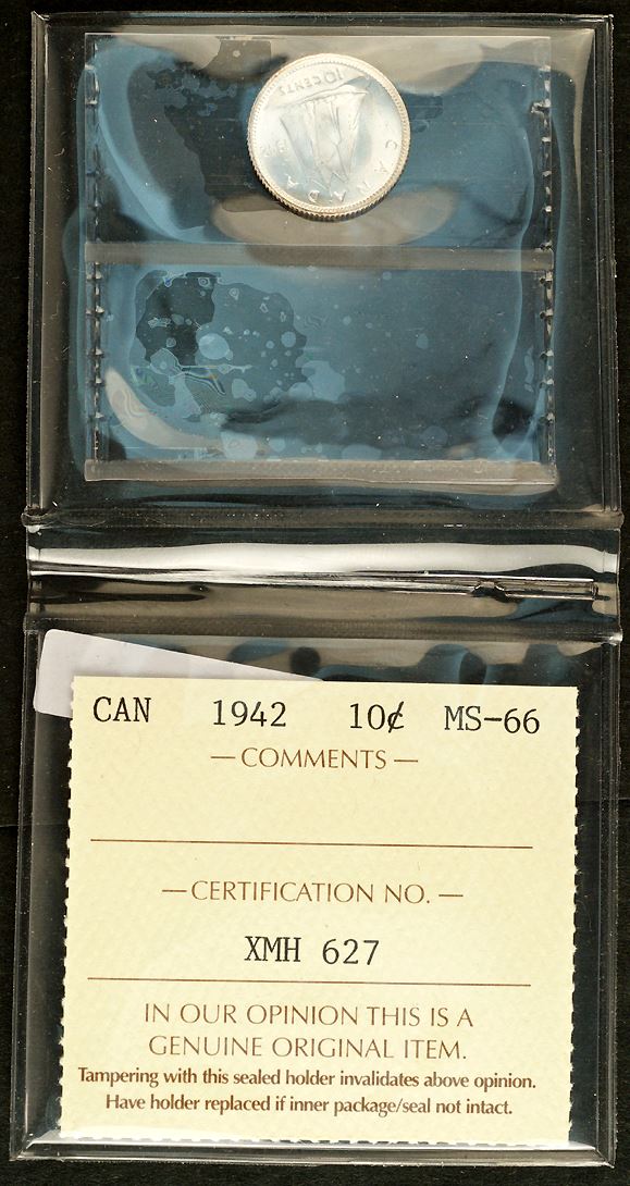 1942, graded by ICCS Minstate-66. A select Gem example with frosty white lustre. Only 3 on the 2015 ICCS population report, with none finer.
