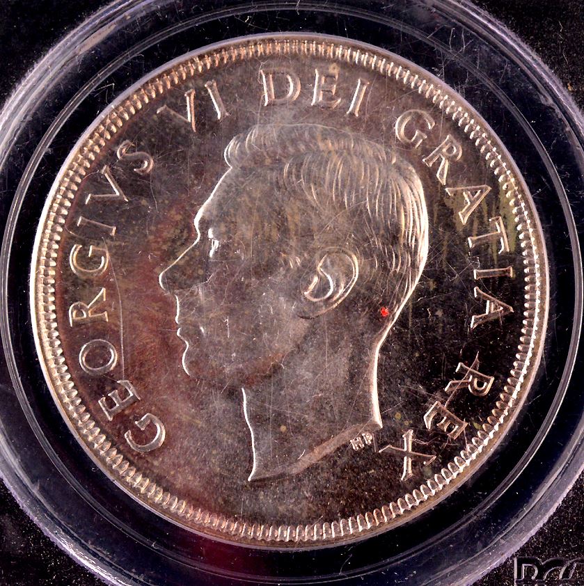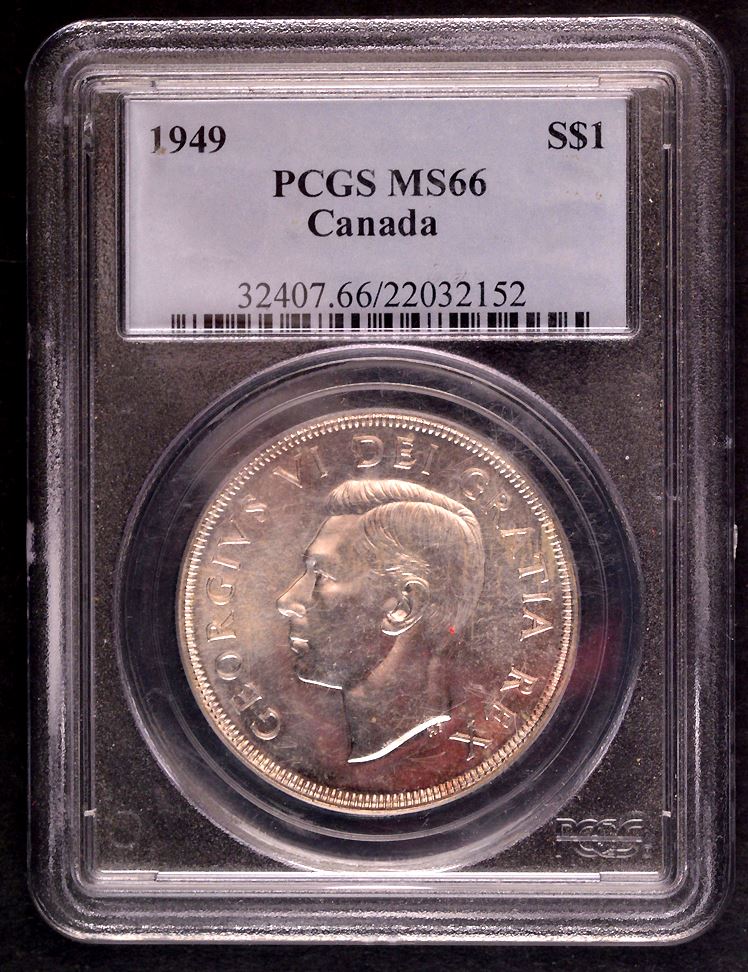 1949, Newfoundland Commemorative, graded by PCGS Mintstate-66. A lovely coin with some light toning.