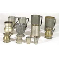 Selection of 19th and 20th century pewter measures and tankards with various marks, largest 1pt
