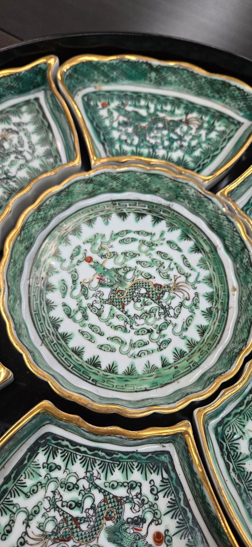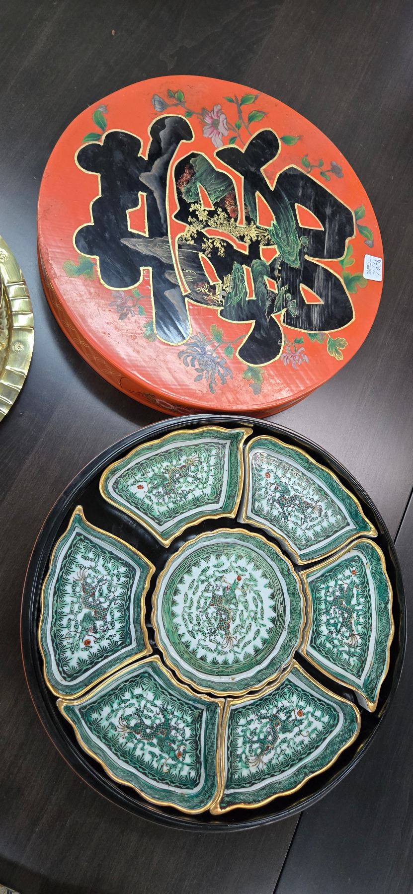 Selection of Asian collectibles including boxed Chinese divided sweetmeat set in fitted lacquered bo