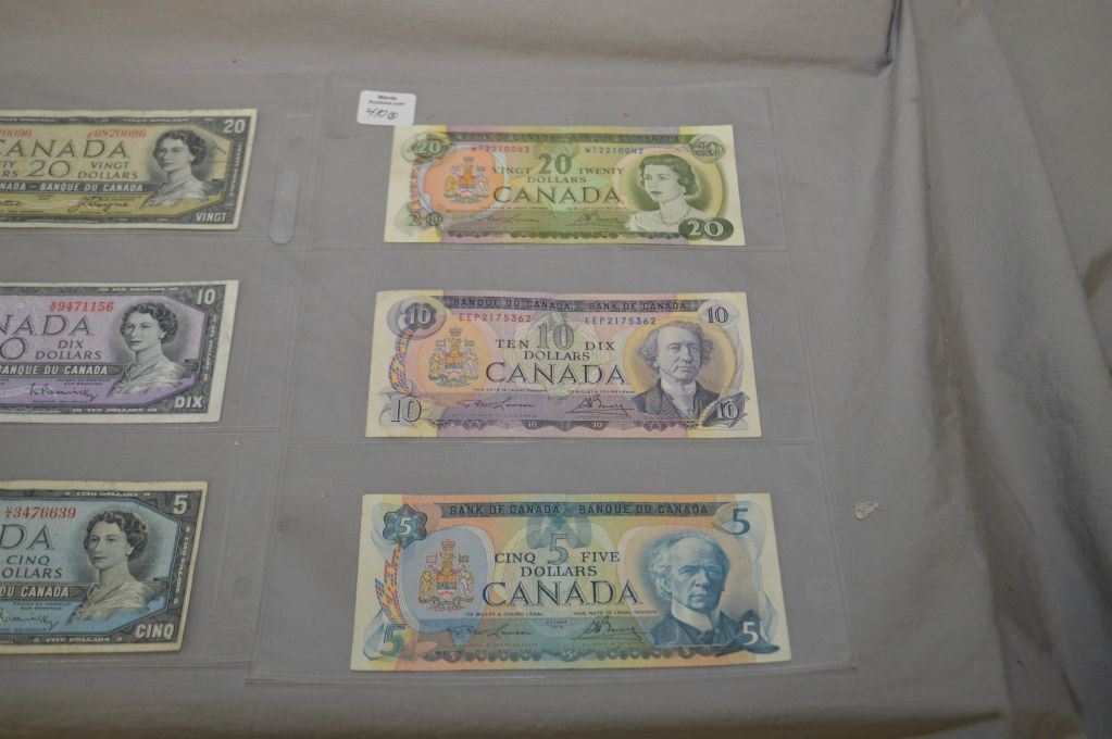 Selection of Canadian bank notes including 1937, one, ten and twenty dollar bill, 1954, five, ten and twenty and 1969 twenty, 1971 ten and a 1979 five dollar bill