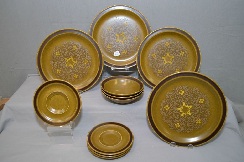 Selection of Estoril Ironstone dinnerware including large plates, bowls etc.