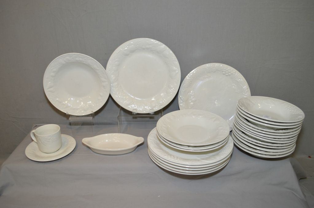 THIS ITEM IS NOT AVAILABLE FOR SHIPMENT. LOCAL BIDDERS ONLY. Selection of "Linns stoneware" white dinnerware including large plates and bowls