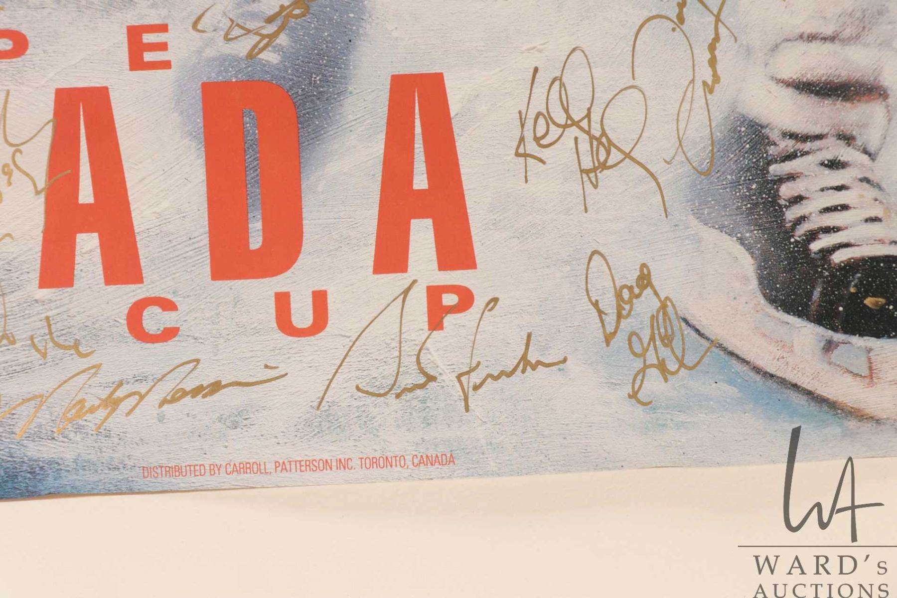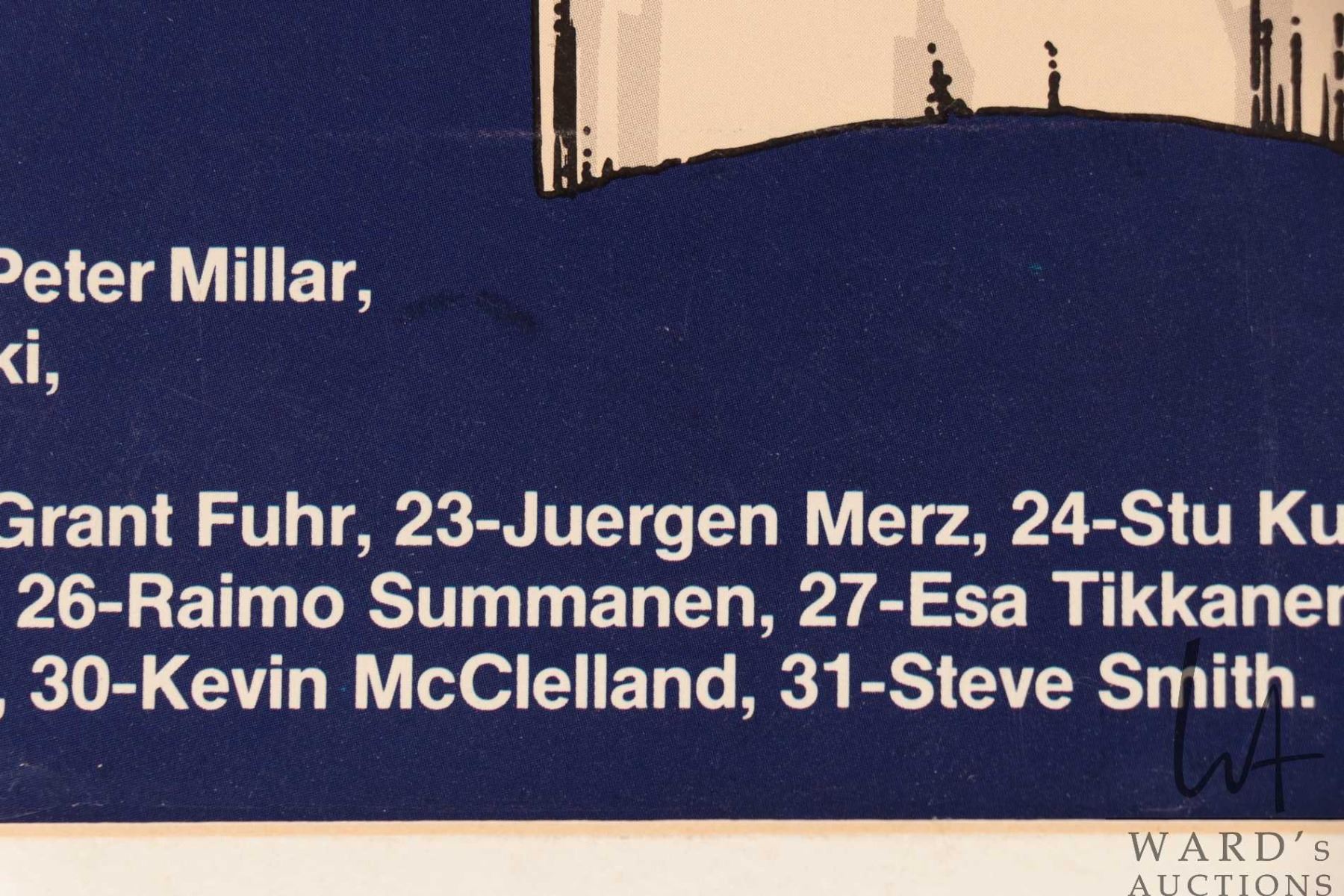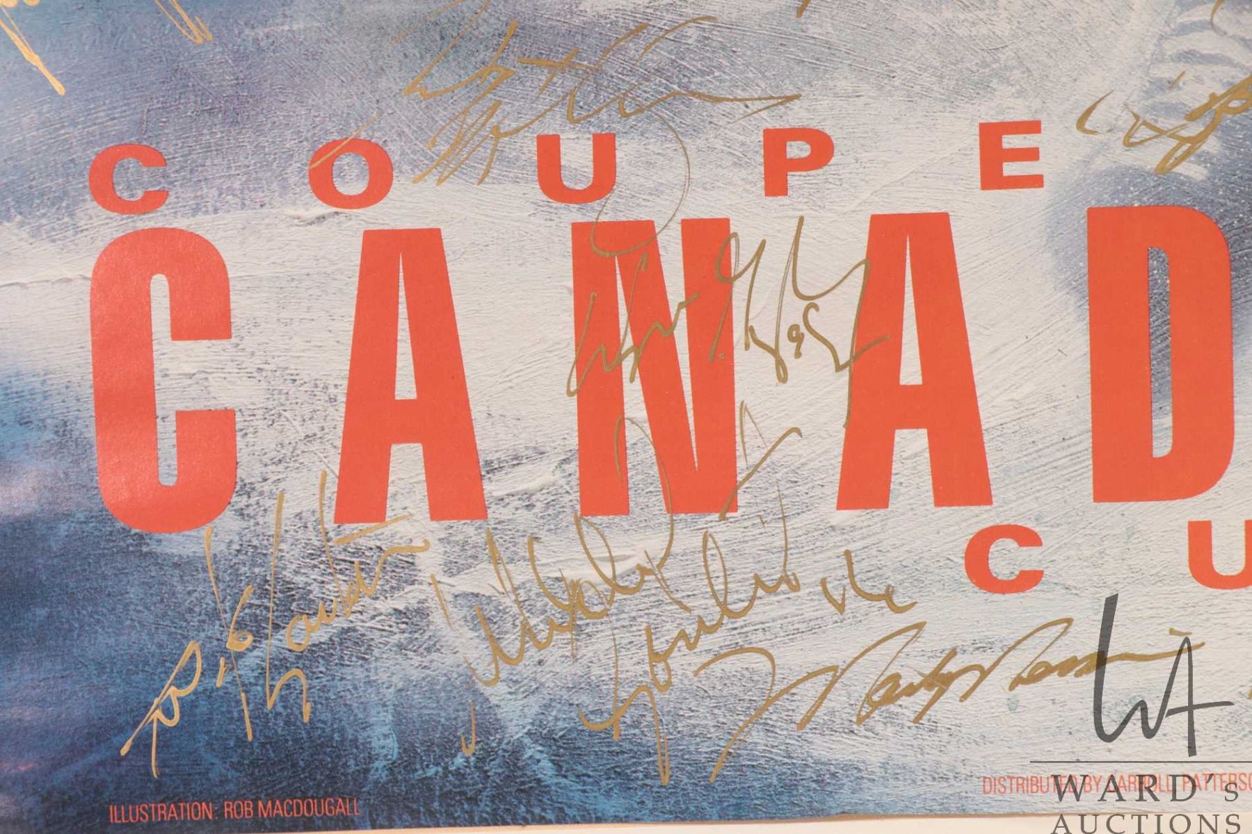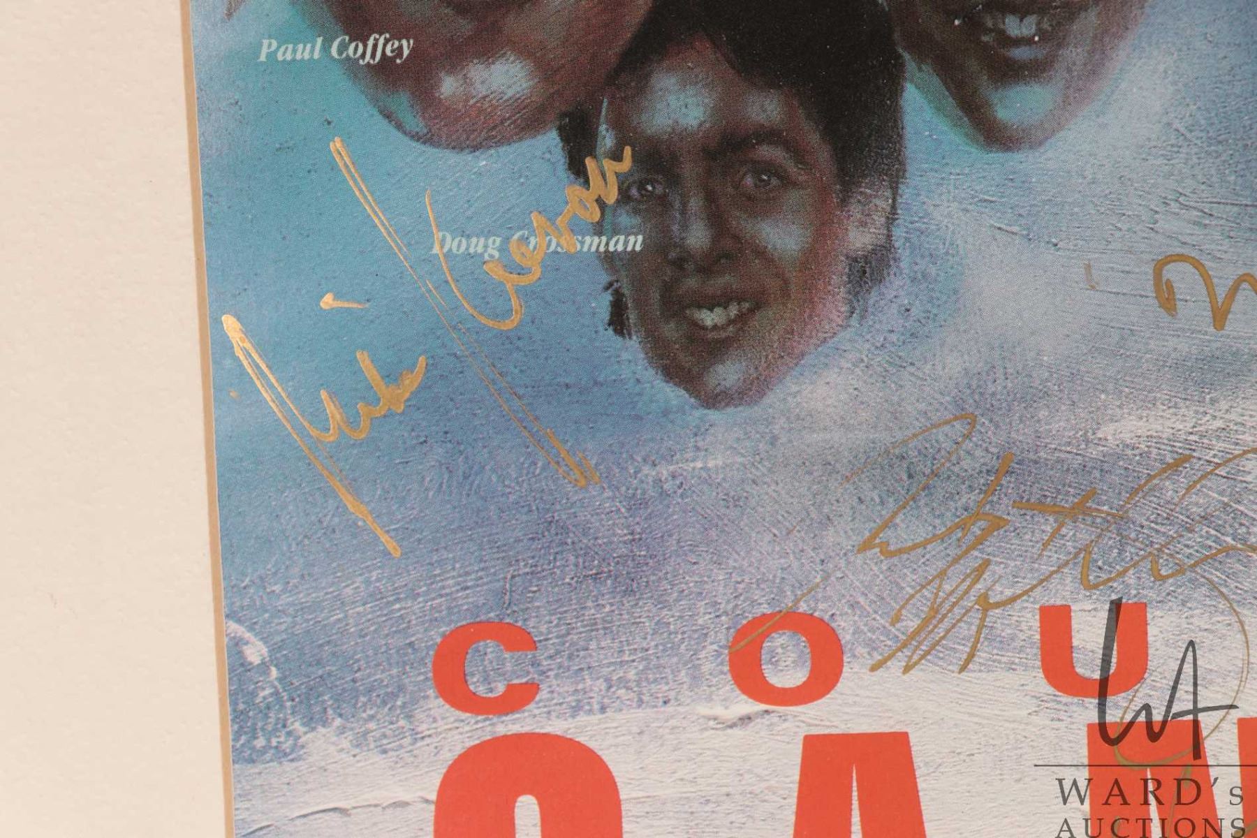 Selection of Oilers memorabilia from the 1986-87 heyday including a "Pirates of the Coliseum" original poster, plus glossy promo from the same photo shoot and a "Edmonton Oilers 1987 Stanley Cup Champions"poster plus a hand signed "Canada '87" Canada Cup poster with signatures including Wayne Gretzky, Glen Anderson, Grant Fuhr etc. All from the personal selection of Oiler's masseuse Juergen Merz, circa 1980's. Note: Artwork is often too large to ship economically and cannot be insured. Local pickup only