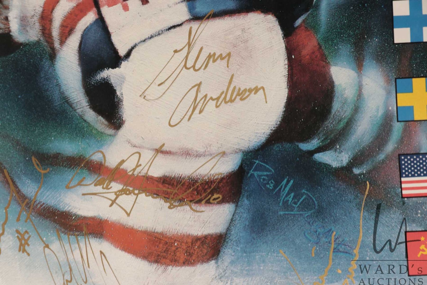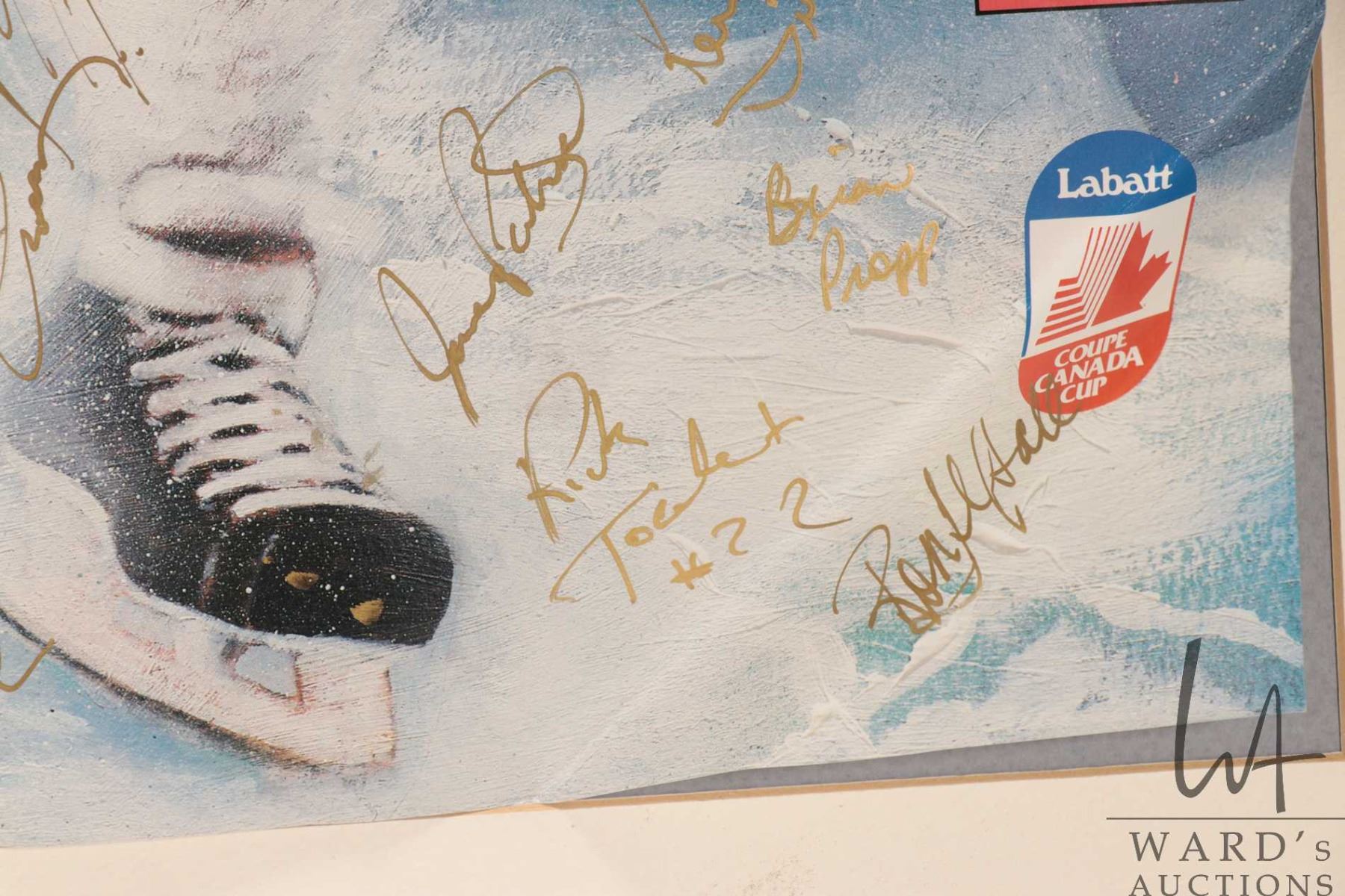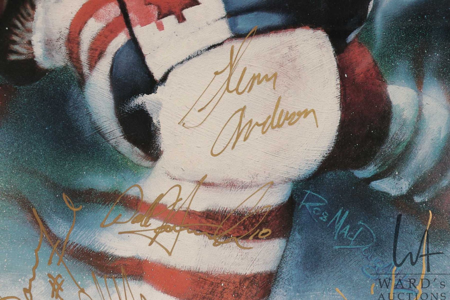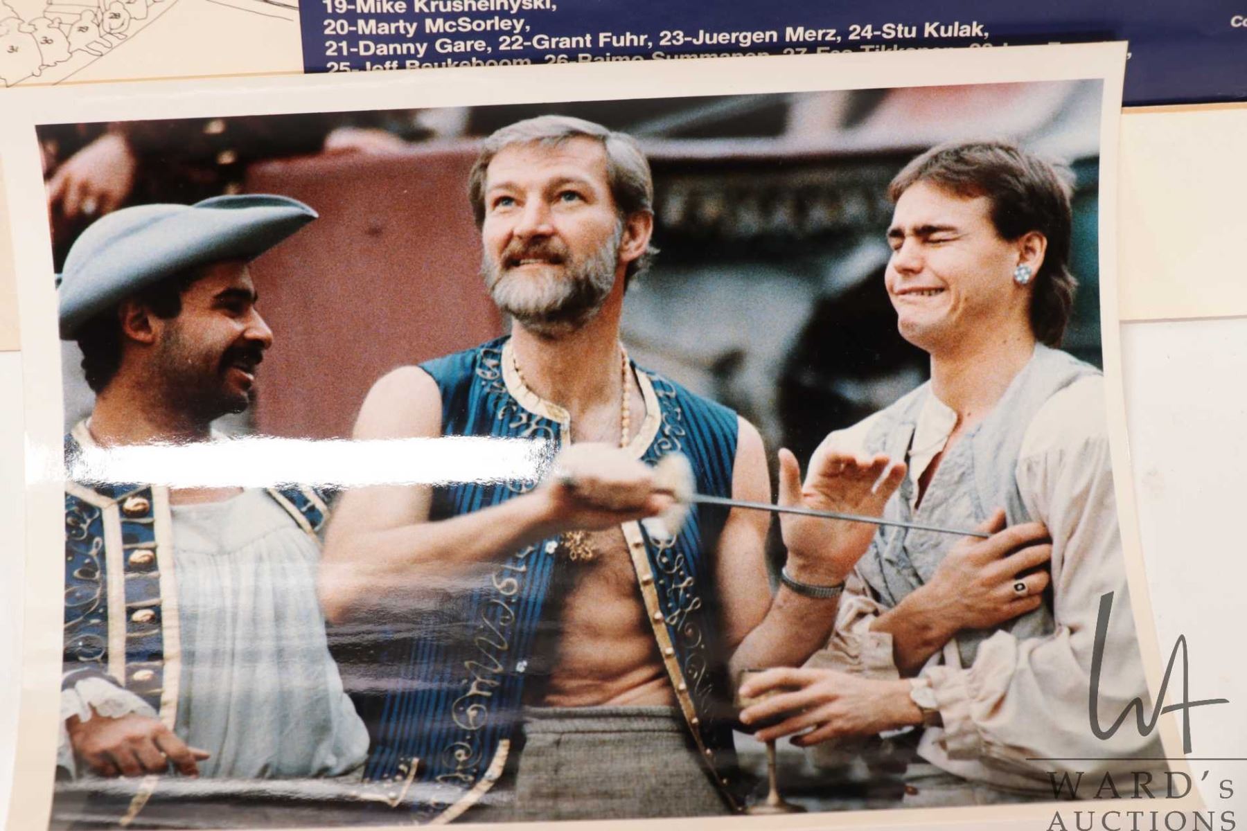 Selection of Oilers memorabilia from the 1986-87 heyday including a "Pirates of the Coliseum" original poster, plus glossy promo from the same photo shoot and a "Edmonton Oilers 1987 Stanley Cup Champions"poster plus a hand signed "Canada '87" Canada Cup poster with signatures including Wayne Gretzky, Glen Anderson, Grant Fuhr etc. All from the personal selection of Oiler's masseuse Juergen Merz, circa 1980's. Note: Artwork is often too large to ship economically and cannot be insured. Local pickup only
