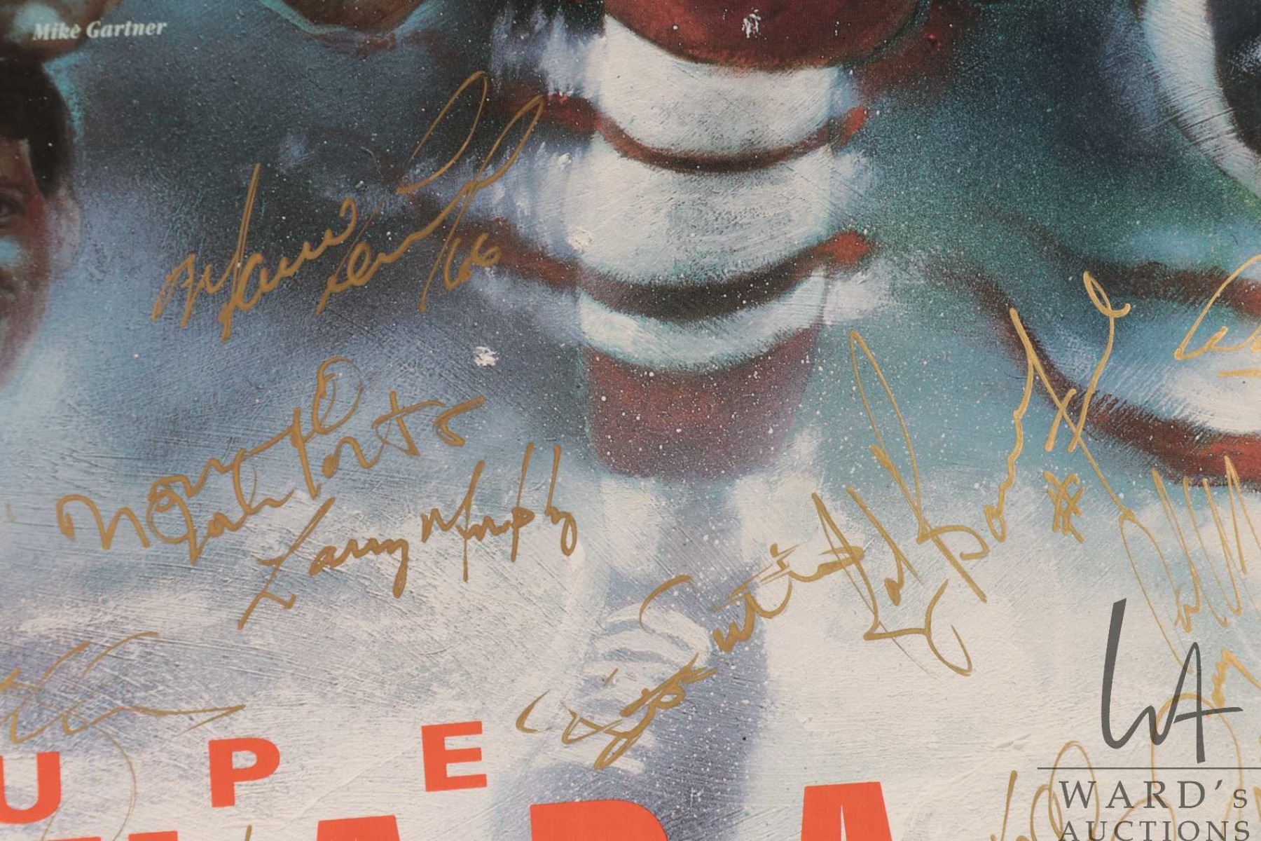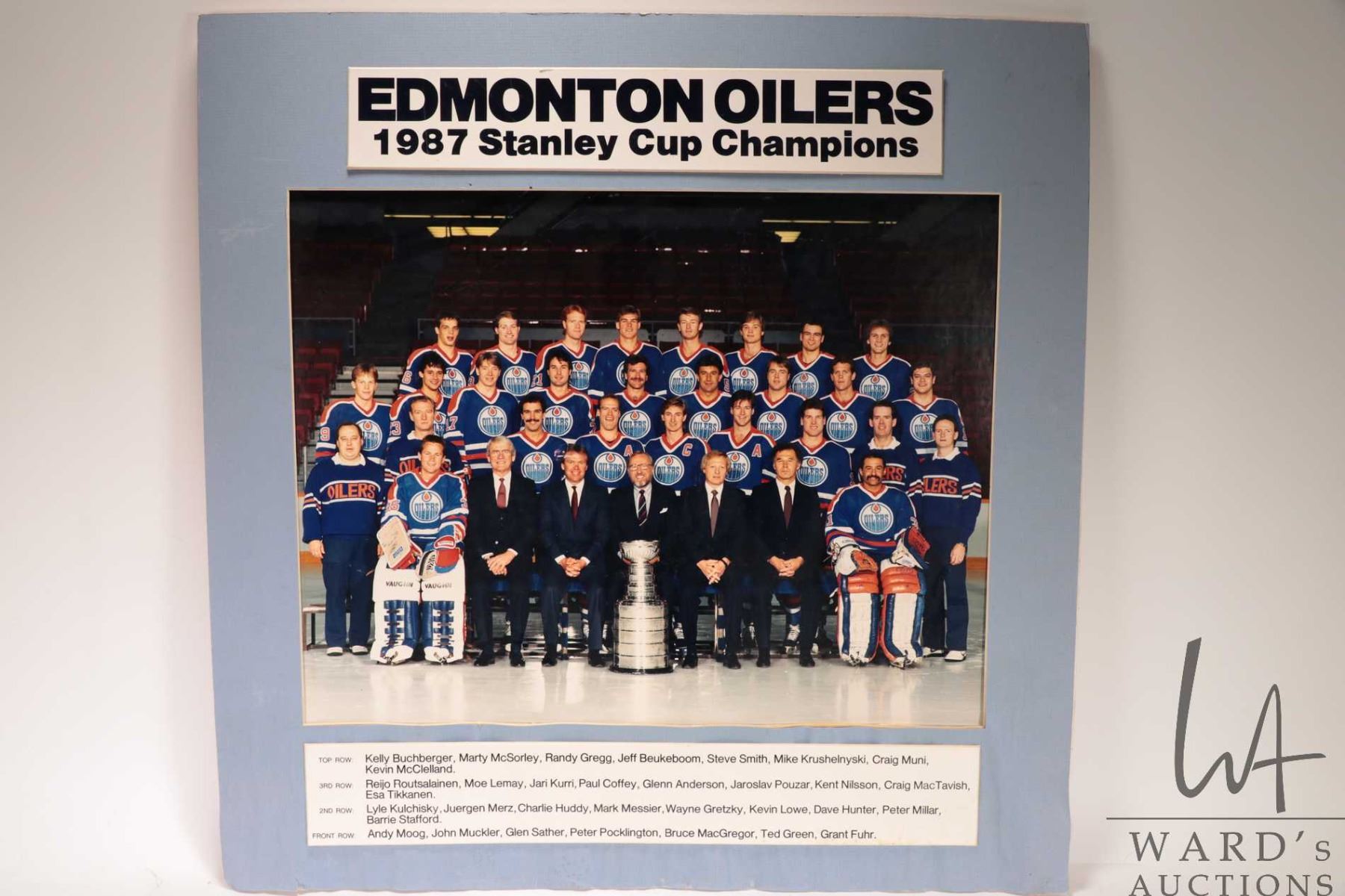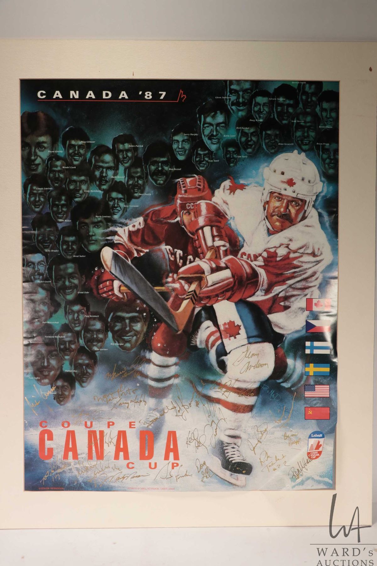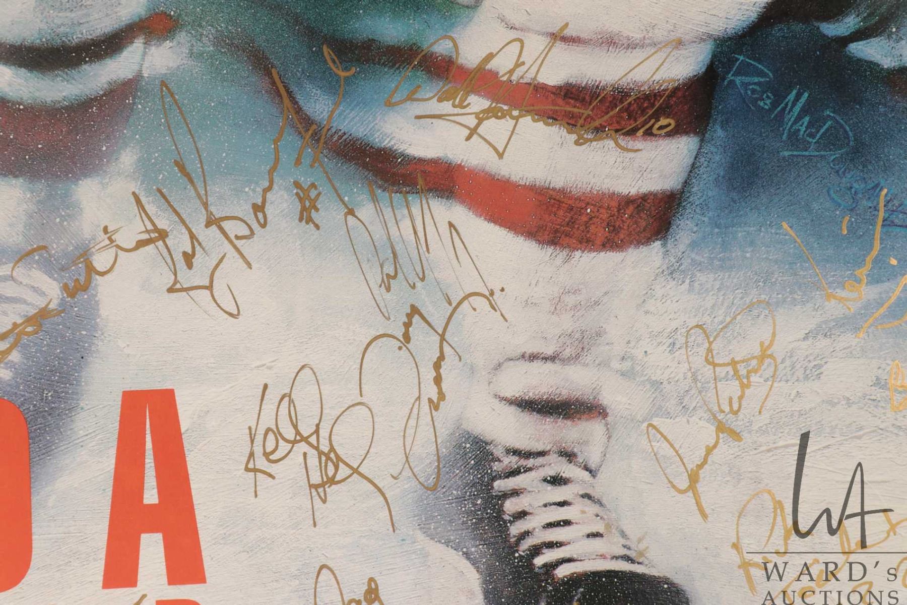 Selection of Oilers memorabilia from the 1986-87 heyday including a "Pirates of the Coliseum" original poster, plus glossy promo from the same photo shoot and a "Edmonton Oilers 1987 Stanley Cup Champions"poster plus a hand signed "Canada '87" Canada Cup poster with signatures including Wayne Gretzky, Glen Anderson, Grant Fuhr etc. All from the personal selection of Oiler's masseuse Juergen Merz, circa 1980's. Note: Artwork is often too large to ship economically and cannot be insured. Local pickup only