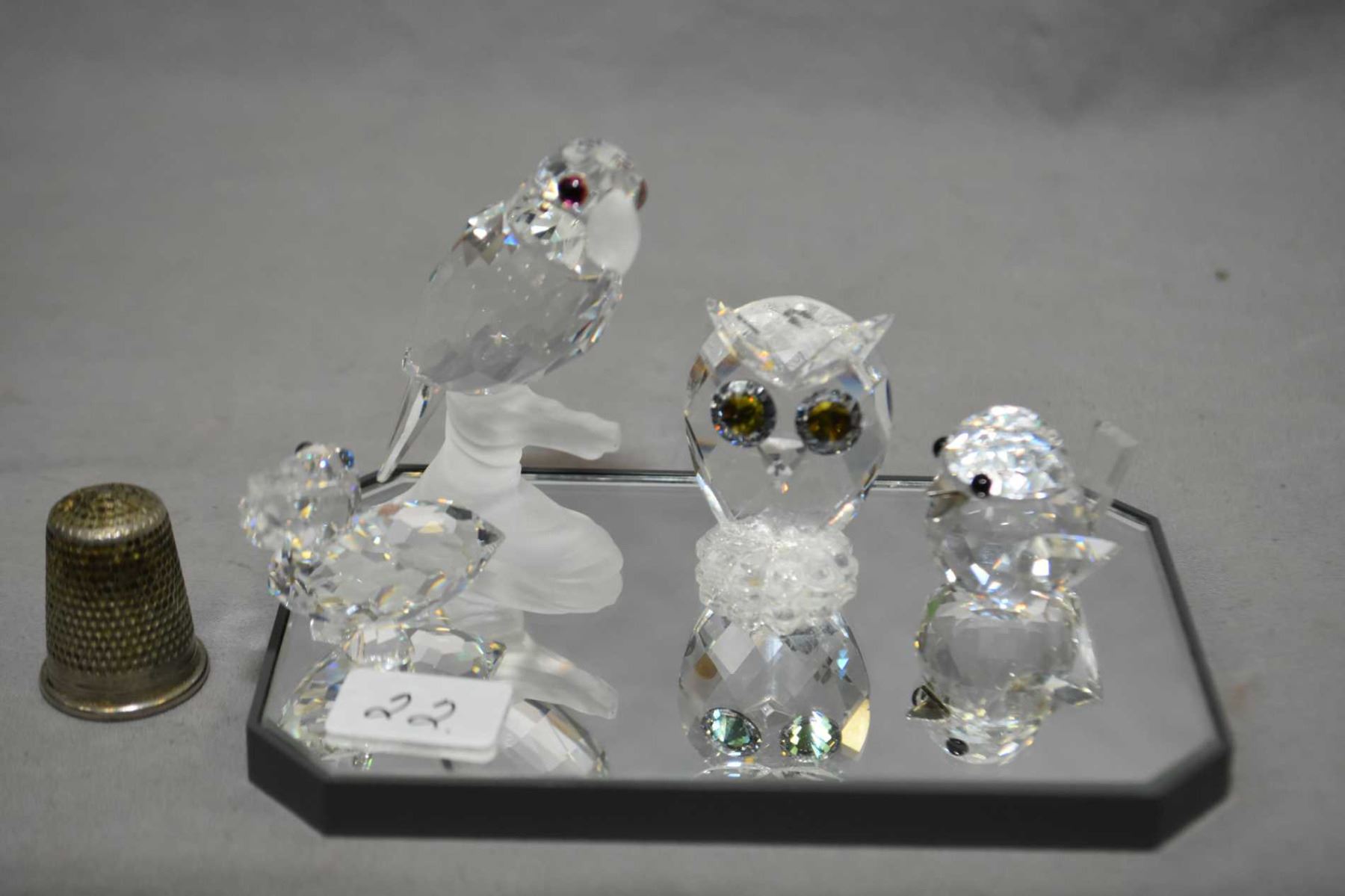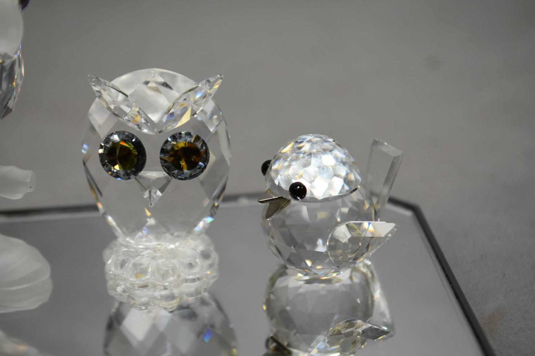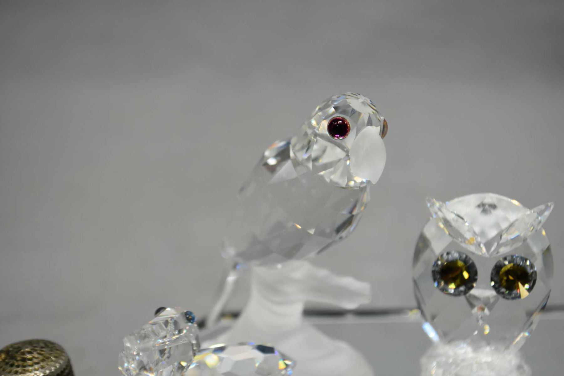 Selection of Swarovski crystal including a parrot, an owl, a sparrow and a pelican with small chip on beak