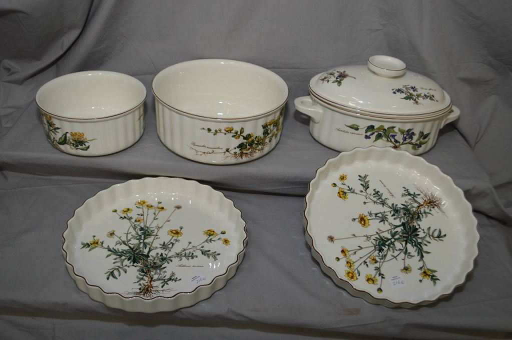 Selection of Villeroy and Boch oven to tableware including to fluted pie dishes, large oval covered casserole dish and two graduated soufflé dishes