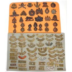 Selection of approximately 30 military badges including Punjabi, Surrey, Wilts name badges, Gloucestershire Regiment, Machine Gun Regiment, ATS badges, etc