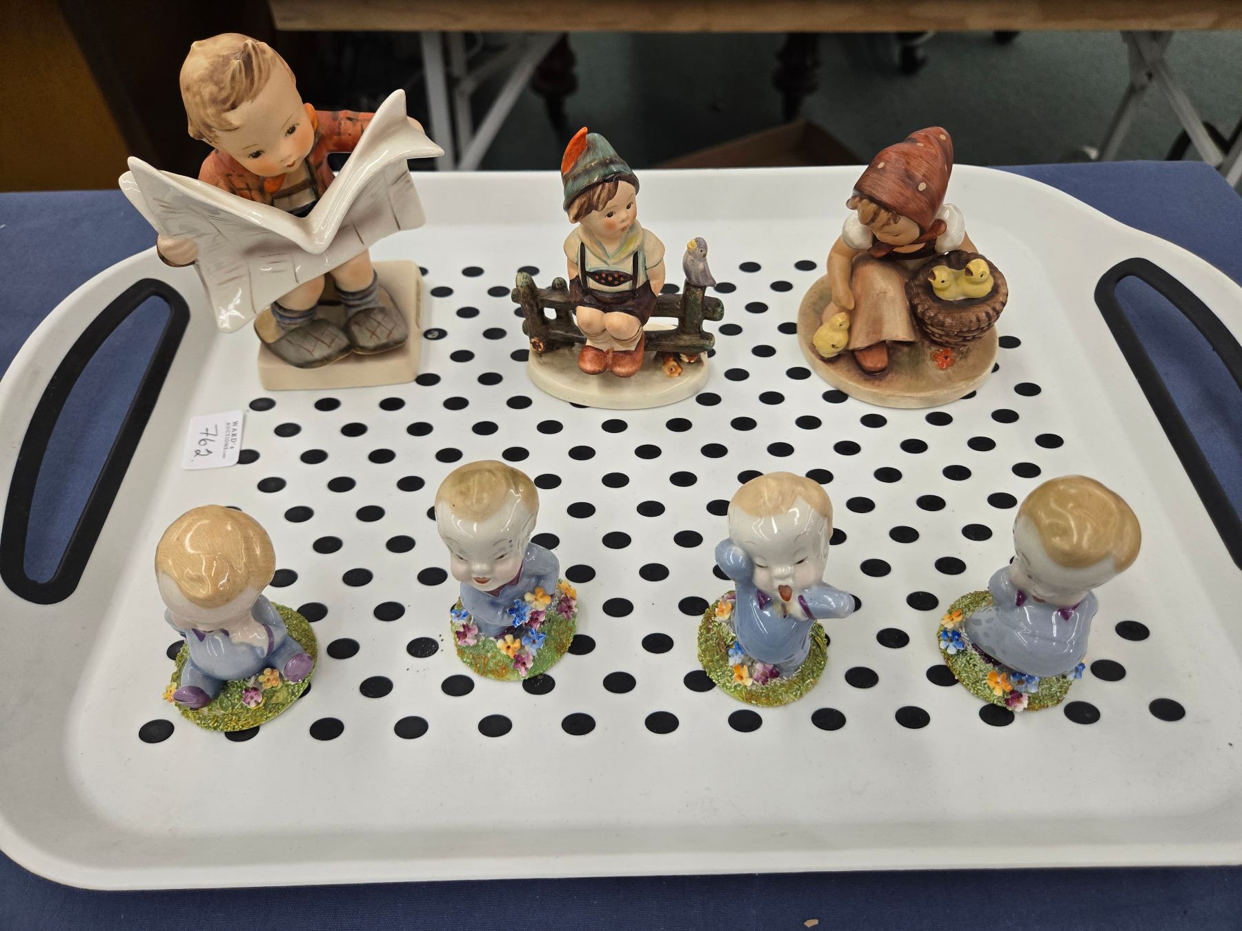 Selection of cabinet pieces including three Hummels, two with full Bee markings, Wades Whimsies incl