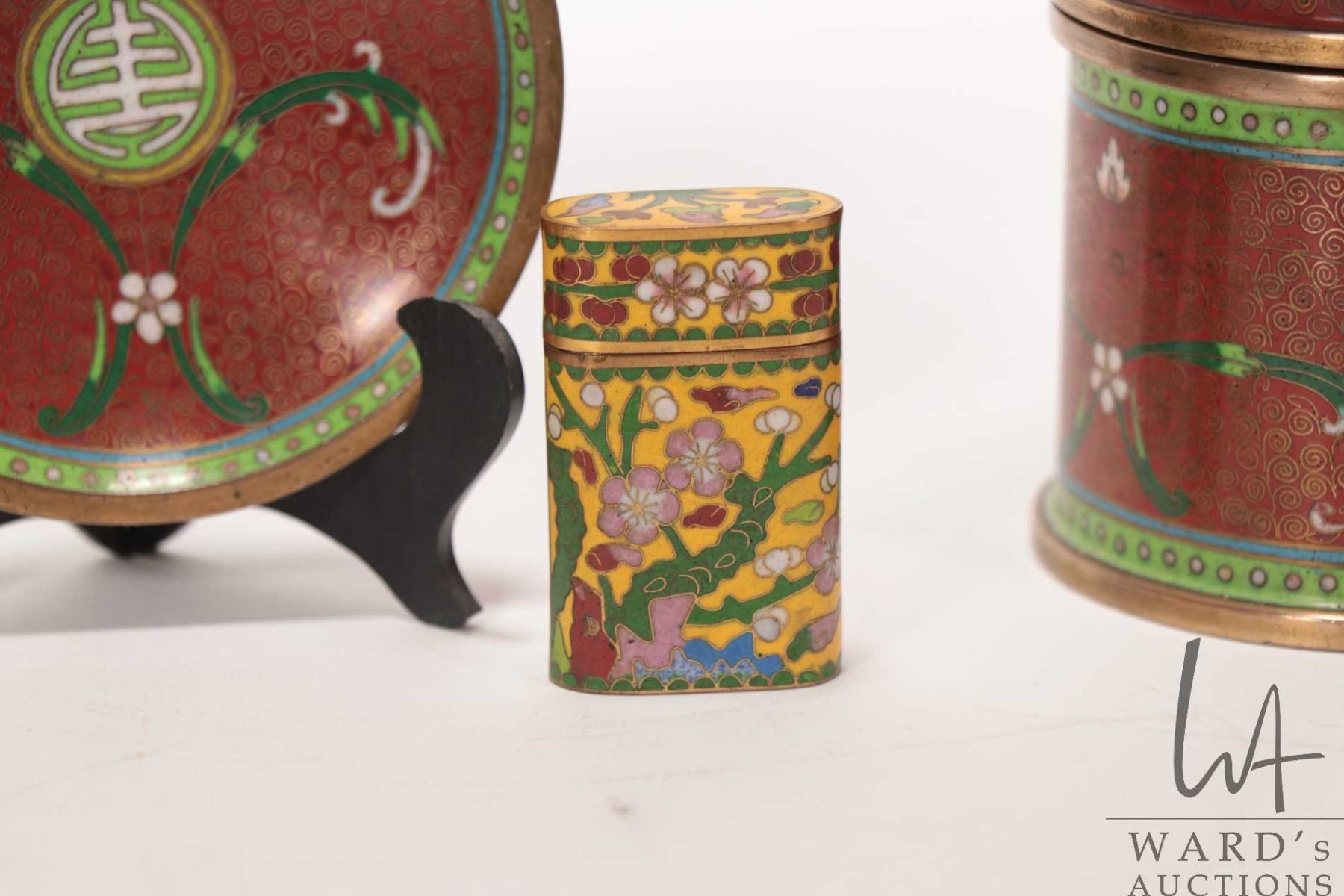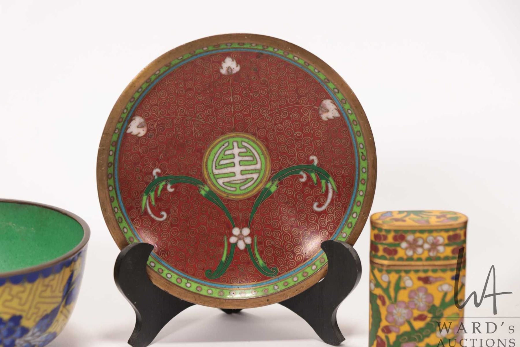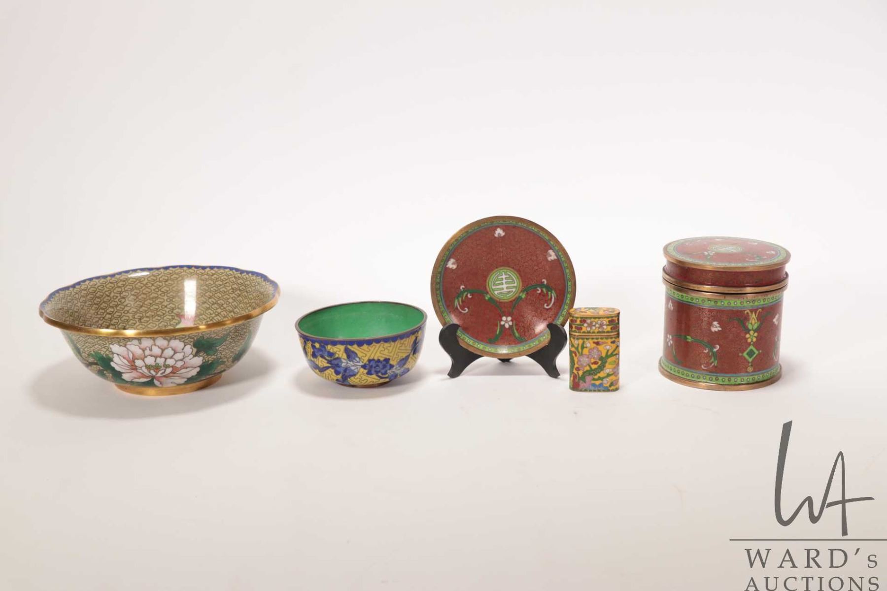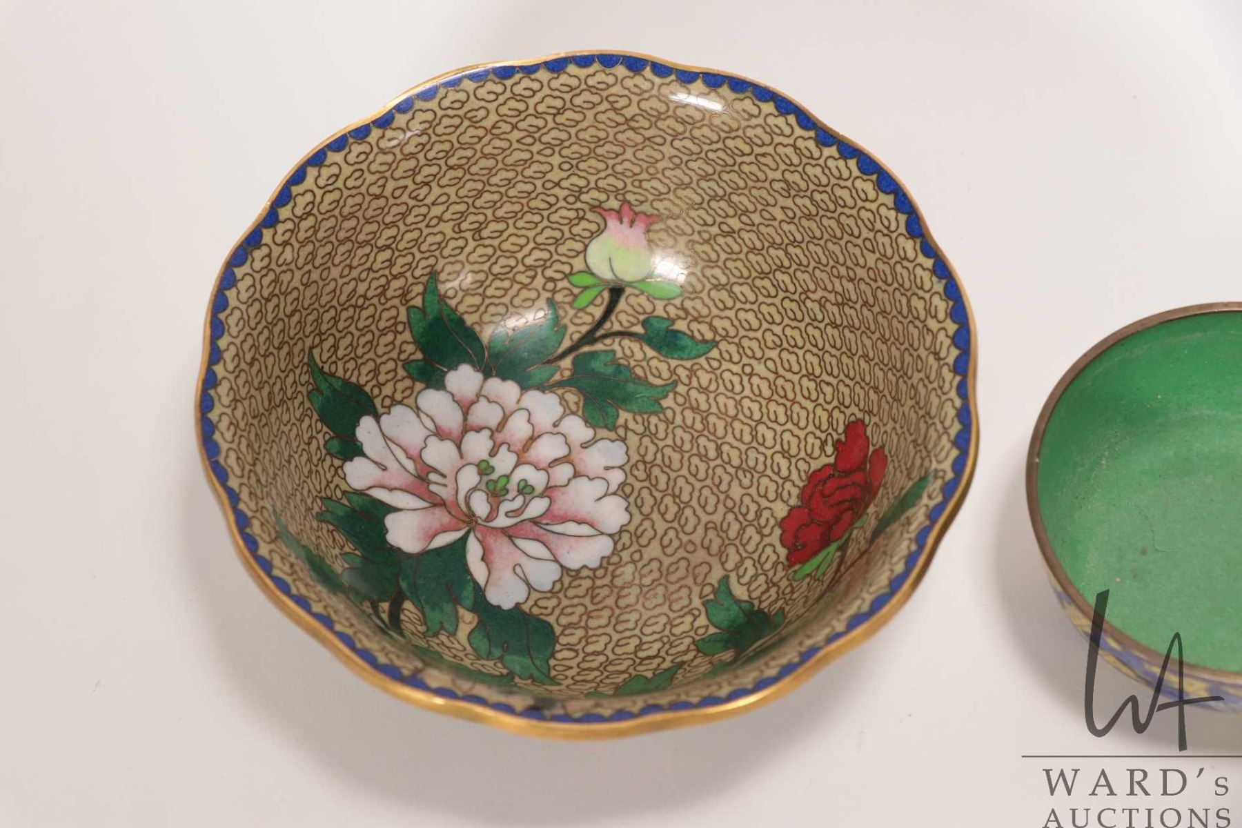Selection of cloisonne including 6" diameter bowl, match case, etc