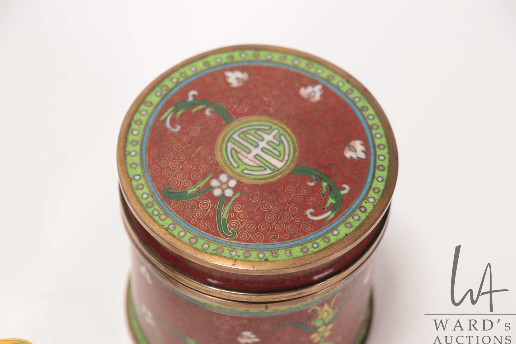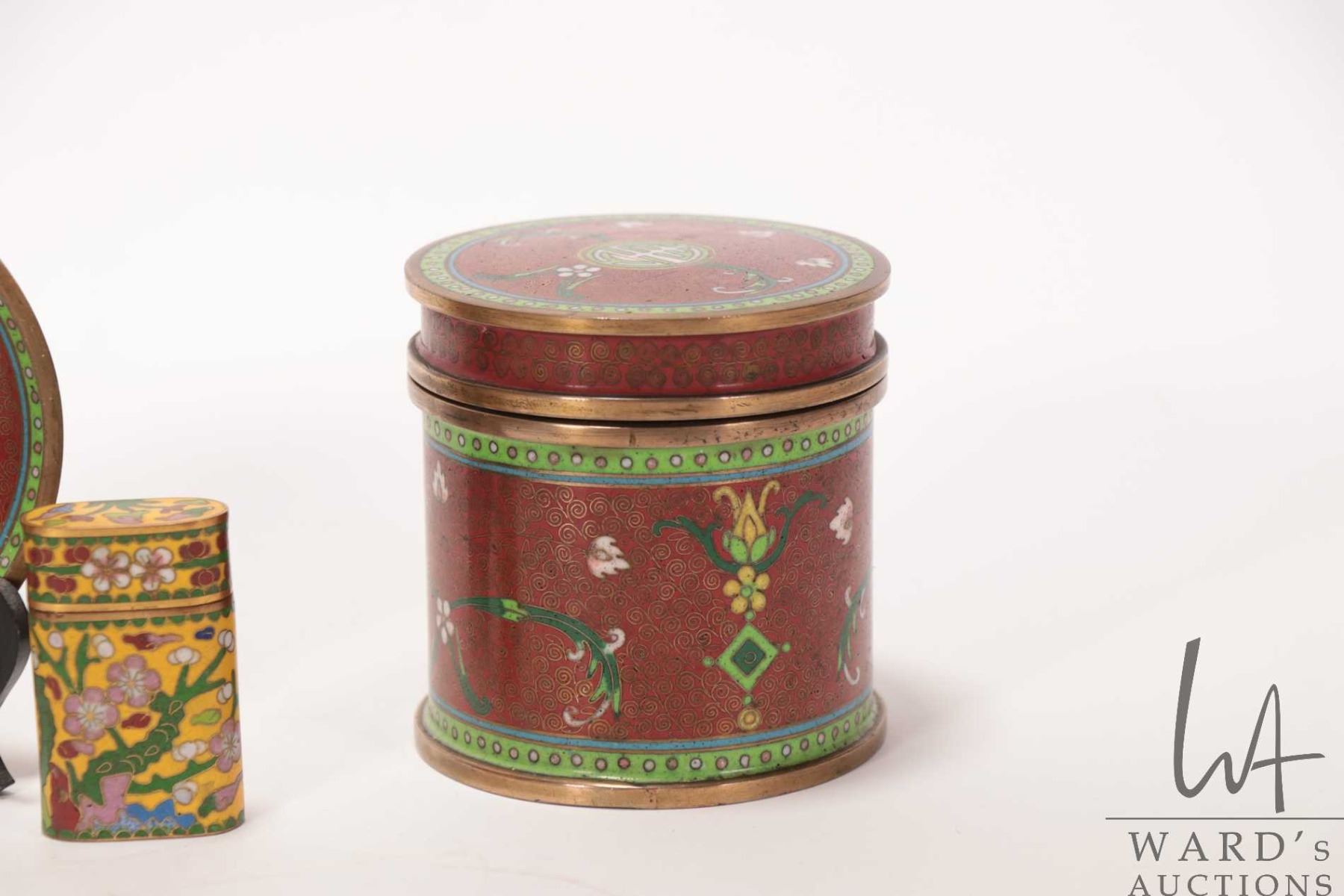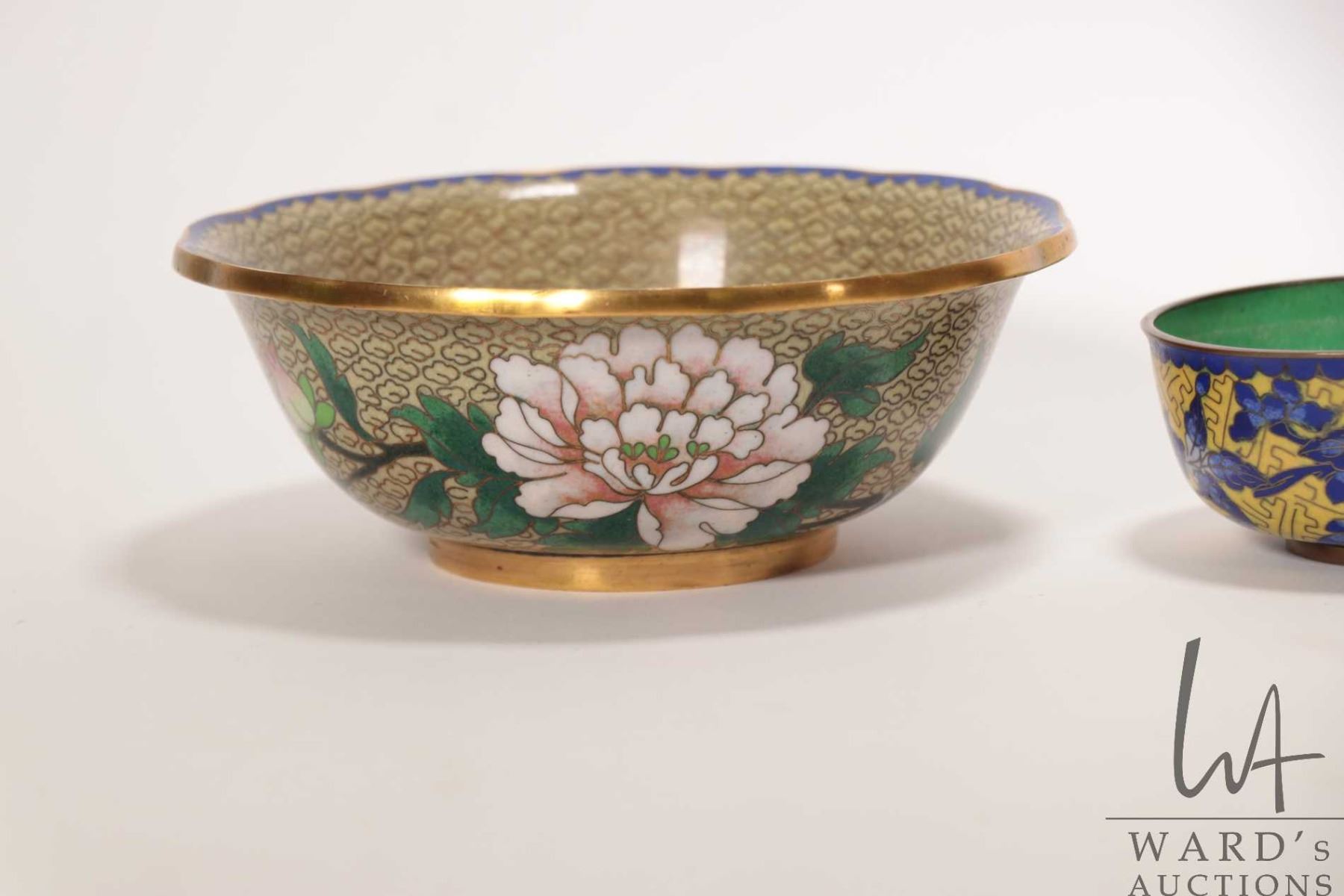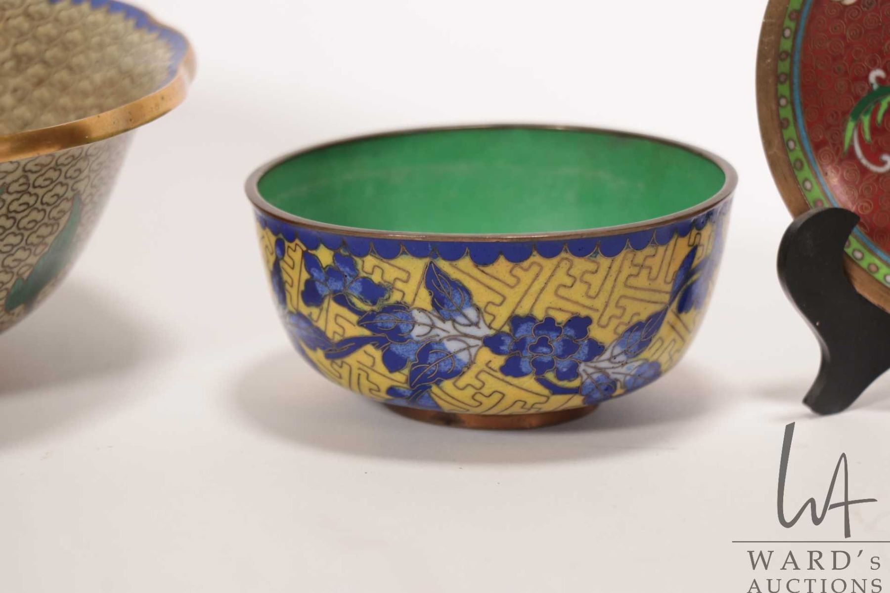 Selection of cloisonne including 6" diameter bowl, match case, etc