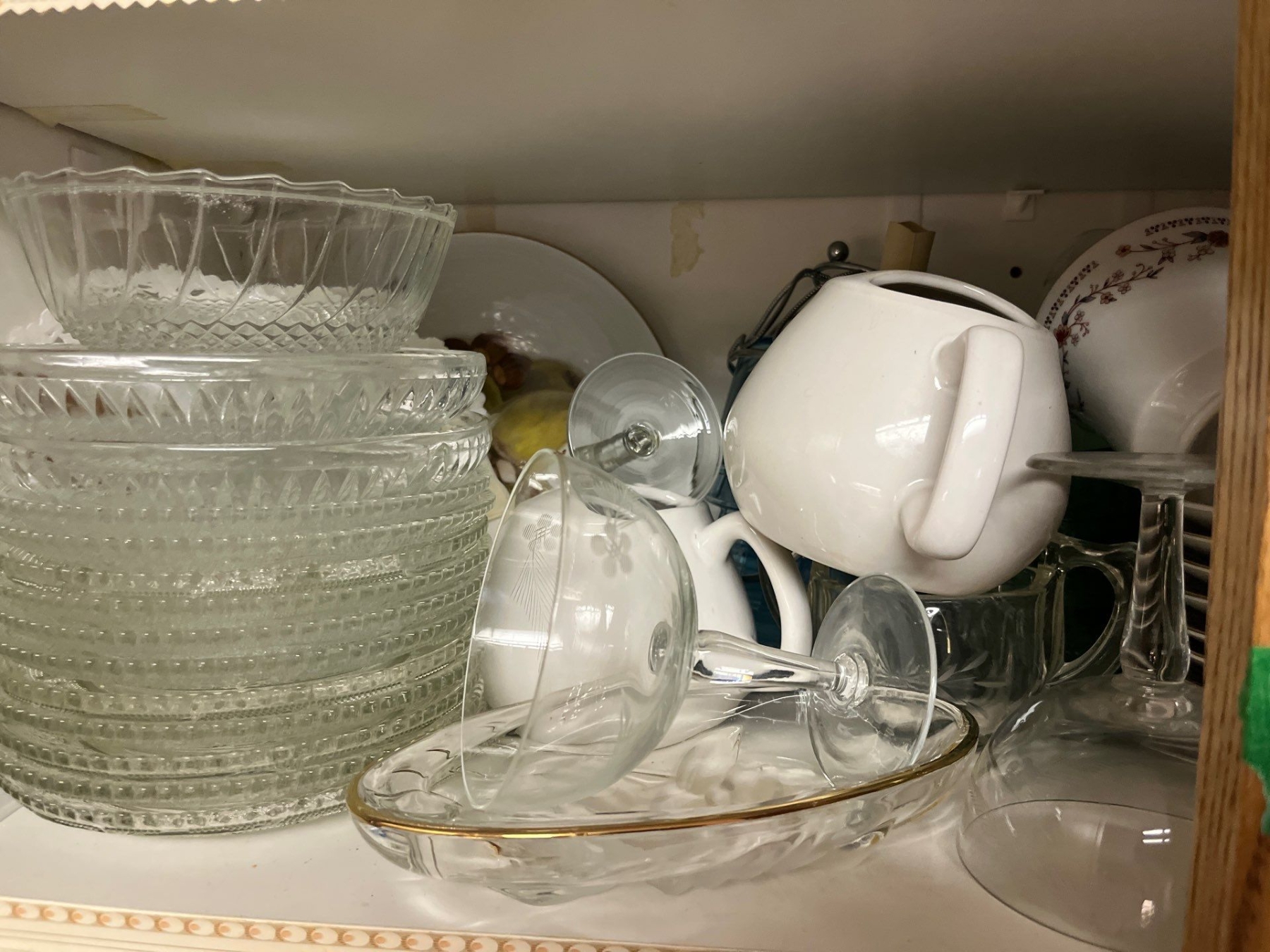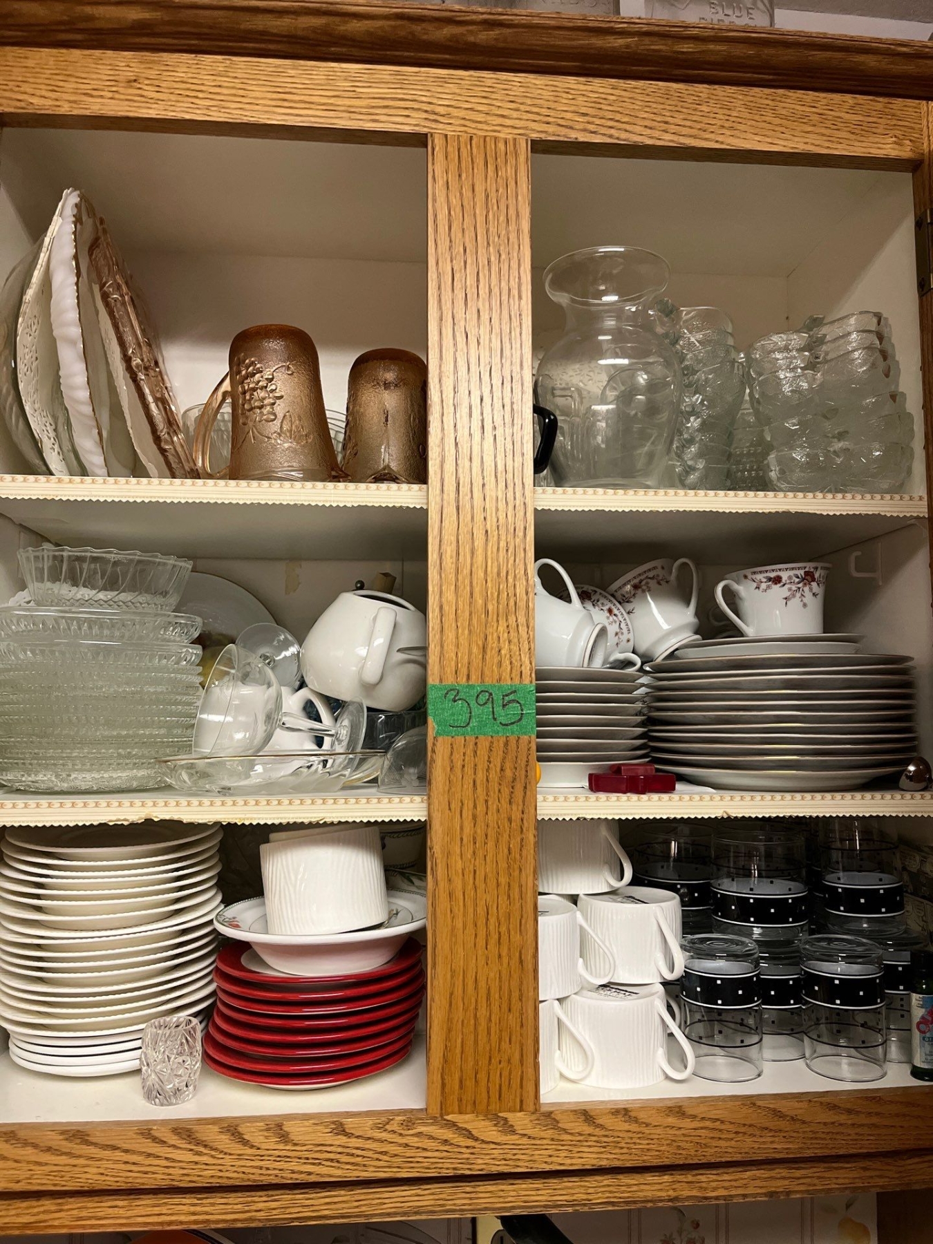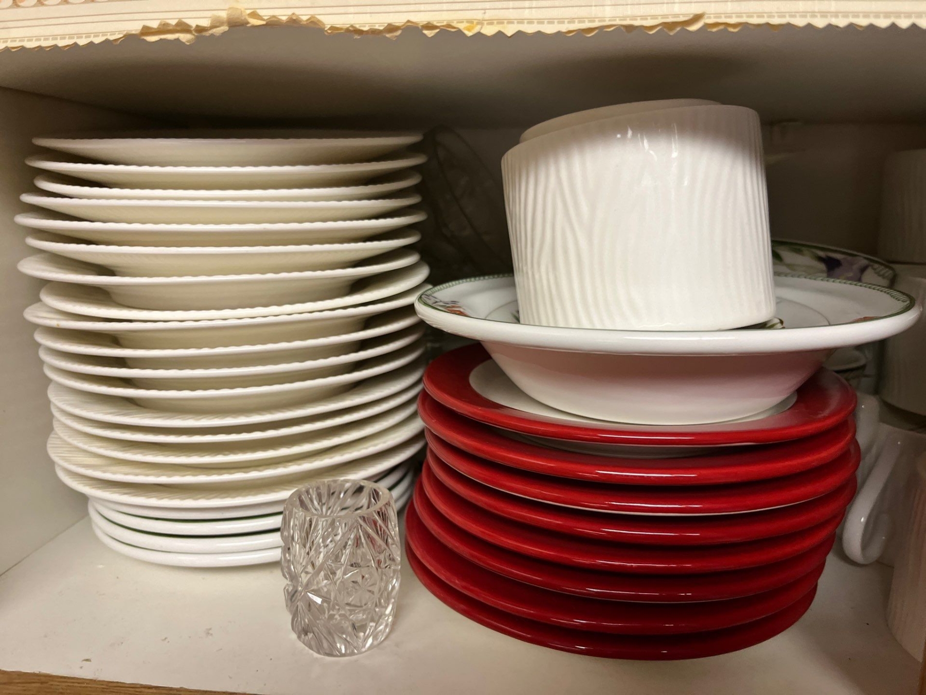 Selection of desert plates in all shapes and sizes, glassware and ceramic small coffee cups, and a set of black water glasses great for entertaining.