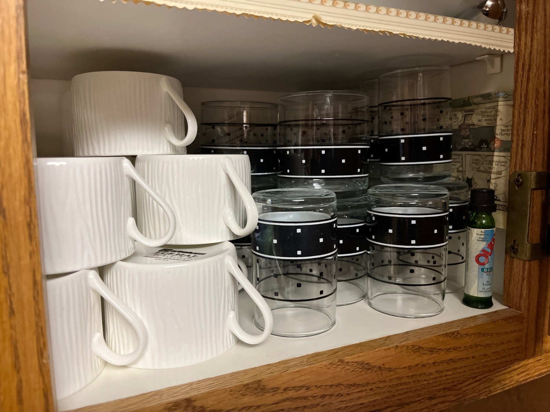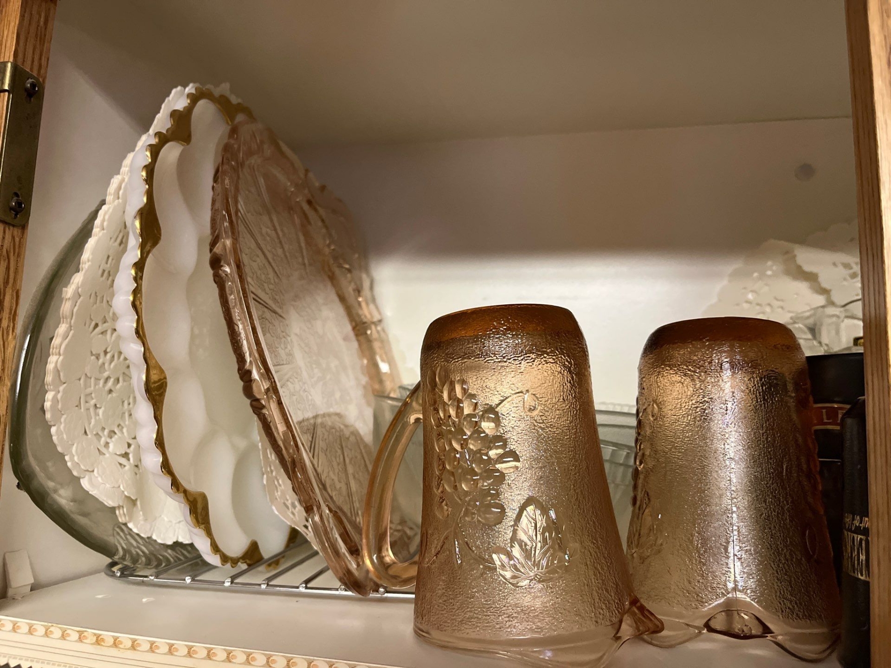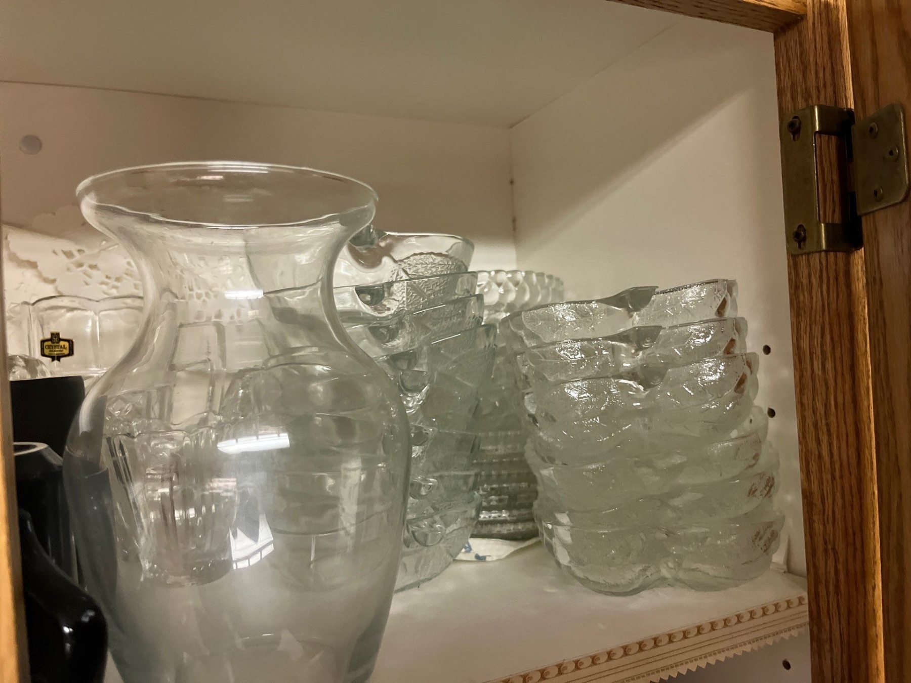 Selection of desert plates in all shapes and sizes, glassware and ceramic small coffee cups, and a set of black water glasses great for entertaining.