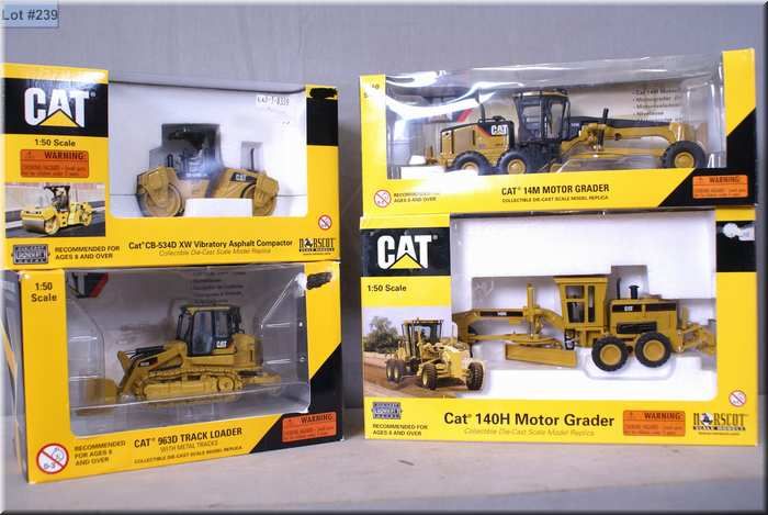 Selection of die cast caterpillars including 140H grader, a 14M grader, a 963D Loader, and a 534D Vibrator
