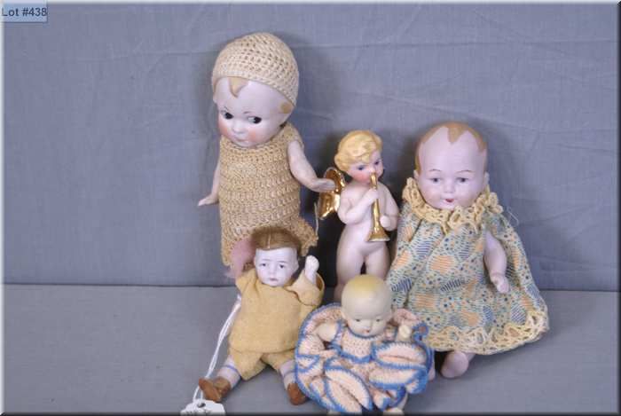 Selection of dolls including all bisque imp, three bisque babies and a small angel, all with good bisque, no cracks or hairlines.
