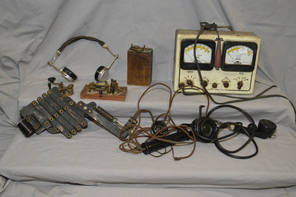 Selection of electrical items including headphones, telegraph key, hand sets and a KIng engine analyzer