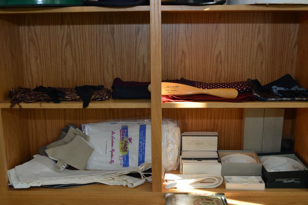 Selection of gents vintage apparel including boxes of collars, Arrow ties bowties and cravats, vests