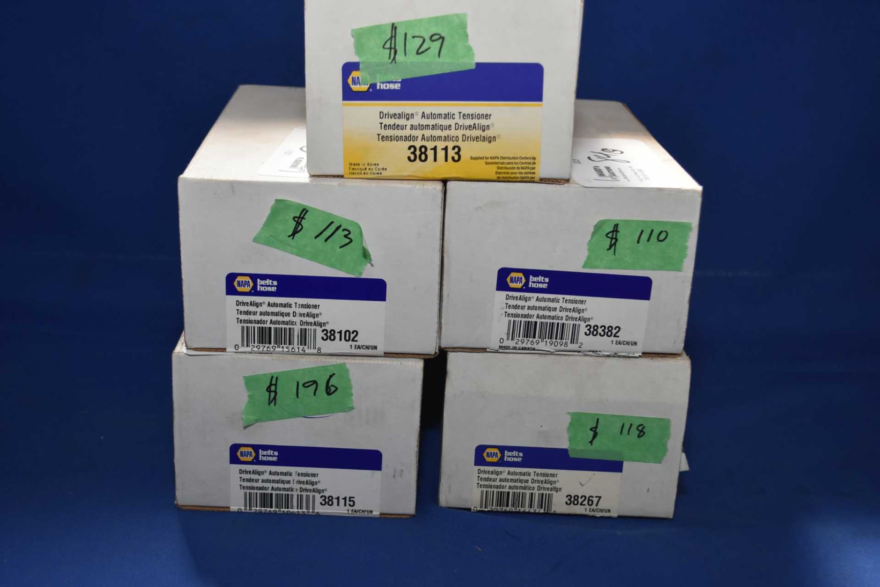 Selection of new Napa belt tensioners including #38113 (retails $129.00), #38102 (retails $113.00), 38382 (retails $110.00), #38115 (retails $196.00) and #38267 (retails $118.00)- ITEM CAN BE SHIPPED THROUGH CANADA POST BY THE AUCTION HOUSE. SHIPPING AND HANDLING COSTS APPLY.