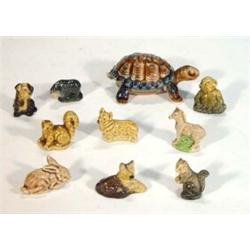 Selection of nine Wade Whimsies and a tortoise with detachable shell