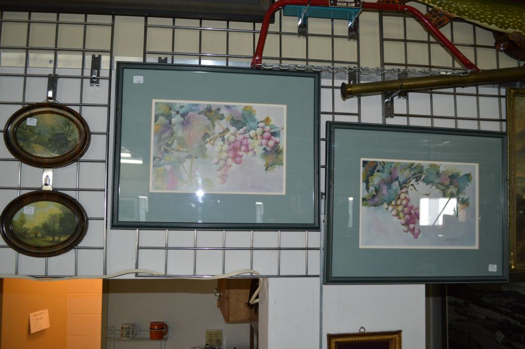 Selection of seven framed print including five vintage and two watercolour style grape motif prints