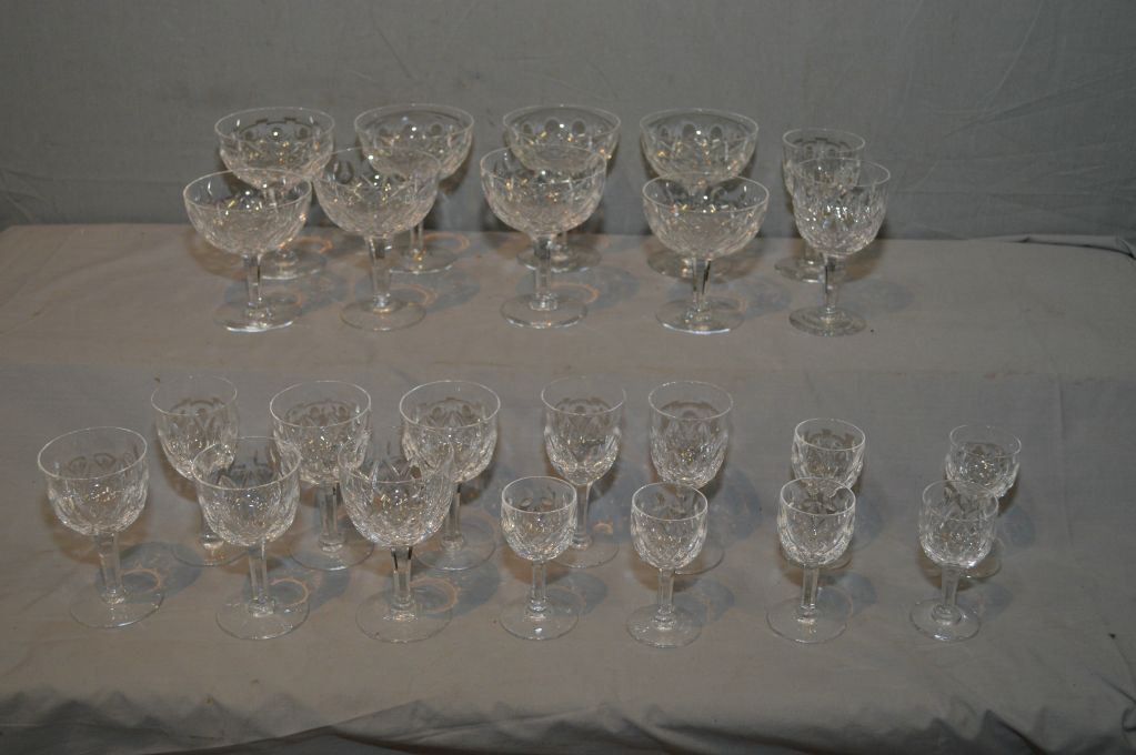THIS ITEM IS NOT AVAILABLE FOR SHIPMENT. LOCAL BIDDERS ONLY. Selection of signed Stuart crystal stems ware including six champagnes, six aperitif, six sherry glasses etc.