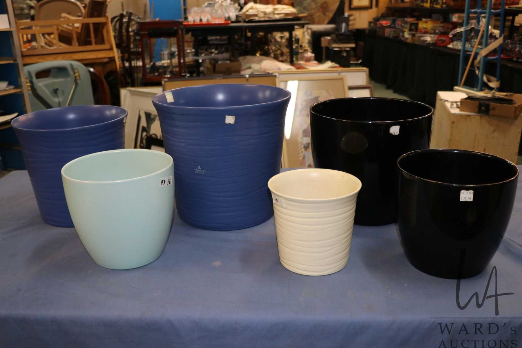 Selection of six German made glazed pots, ranging from 8" to 11" . Note: Not available for shipping. Local pickup only