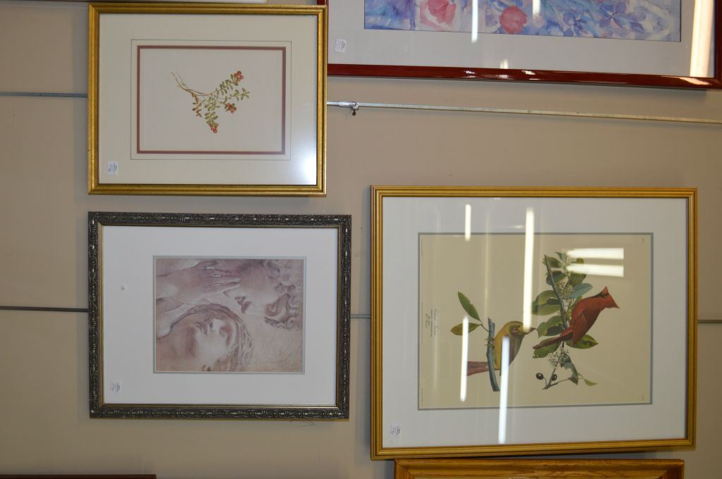 Selection of three frames prints including berries, Greek statues, and cardinals -Rm 105