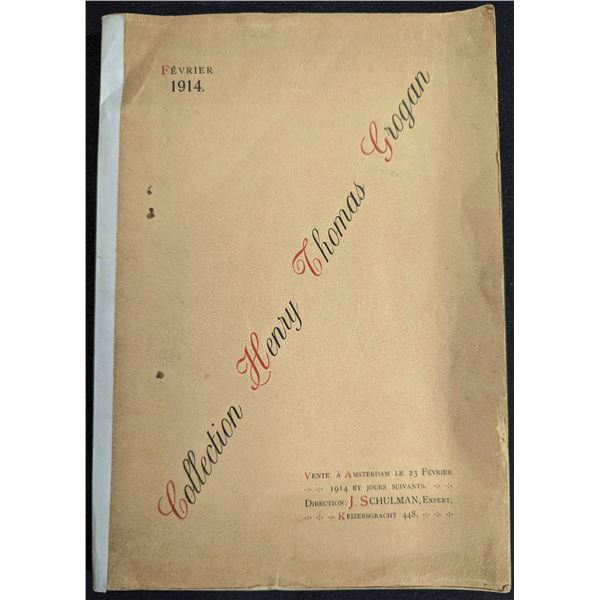 Schulman, Jacques. CATALOGUE DE LA COLLECTION IMPORTANTE H.T. GROGAN A LONDRES. February 23, 1914. 1-2280 lots. Tall 8vo. This auction sale catalog in