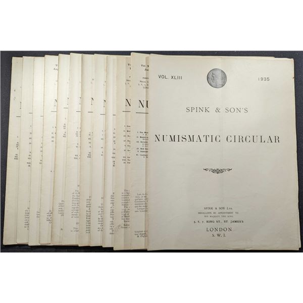 THE NUMISMATIC CIRCULAR. 1935. Spink & Son Ltd. The Numismatic Circular. Volume XLIII. 1935: January, No. 1 to December, No. 12. Complete. 50+ p...