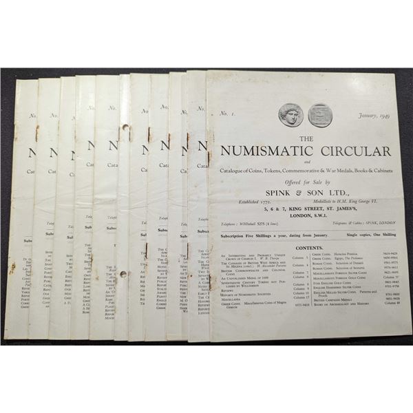 THE NUMISMATIC CIRCULAR. 1949. Spink & Son Ltd. The Numismatic Circular. Volume LVII. 1949: January, No. 1 to December, No. 12. Complete. 24+ pa...