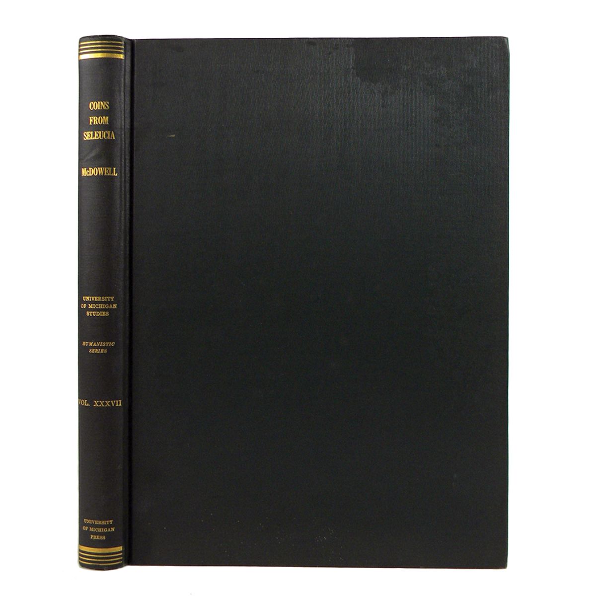 McDowell, Robert Harbold. COINS FROM SELEUCIA ON THE TIGRIS. Ann Arbor, 1935. 4to, original green cloth, gilt. xiv, 248, (2), ix pages; 6 plates. Fine. University of Michigan Studies, Humanistic Series, Volume XXXVII. An important catalogue of Seleucid, Parthian and other coins found in the late 1920s and early 1930s on the site of Seleucia on the Tigris. Scarce. Clain-Stefanelli 3011. Daehn 659.