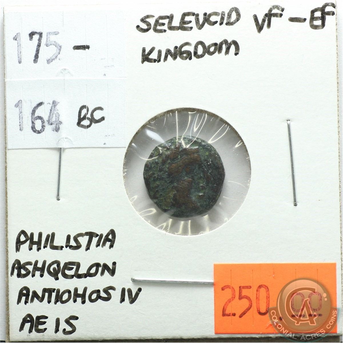 Seleucid Kingdom 175-164 BC; AE 15; Philistia; Ashqelon; Antiochos IV; VF-EF; Reverse - 'Antiochos IV Head to Right, Dove Standing to Left. AC'