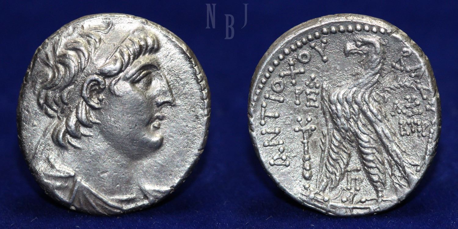 Seleucid Kingdom: Demetrios II 146-138 BC (First Reign), Silver Tetradrachm, Diademed bust of Demetrios II right. Eagle standing left on a prow, palm over shoulder. Club and monogram of Tyre to left, monogram below. (13.83gm, 28mm) Good Very Fine.