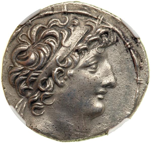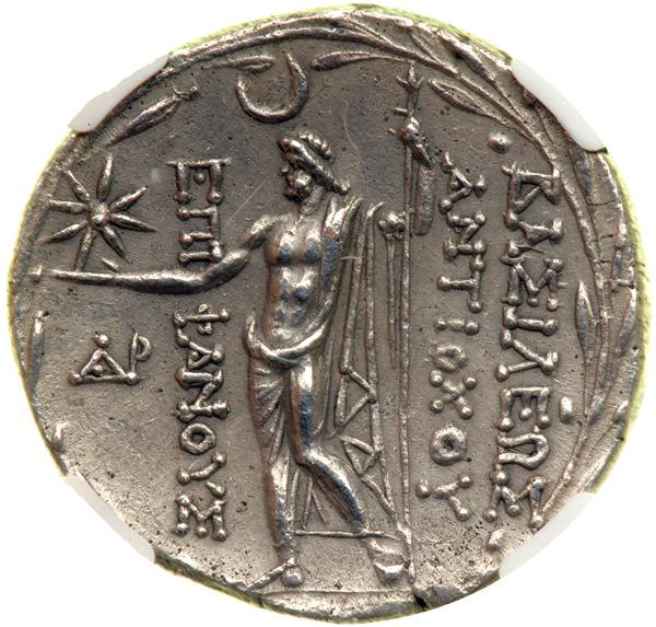 Seleukid Kingdom. Antiochos VIII, 121-96 BC. AR Tetradrachm (16.32 g) minted at Akko. Diademed head right of Antiochos VIII. Reverse: Zeus standing left, holding star and scepter; laurel wreath border. Houghton (CSE) 813; ANS NNM 84, p. 28, 35. NGC graded Choice XF: Strike 5/5; Surface 3/5.