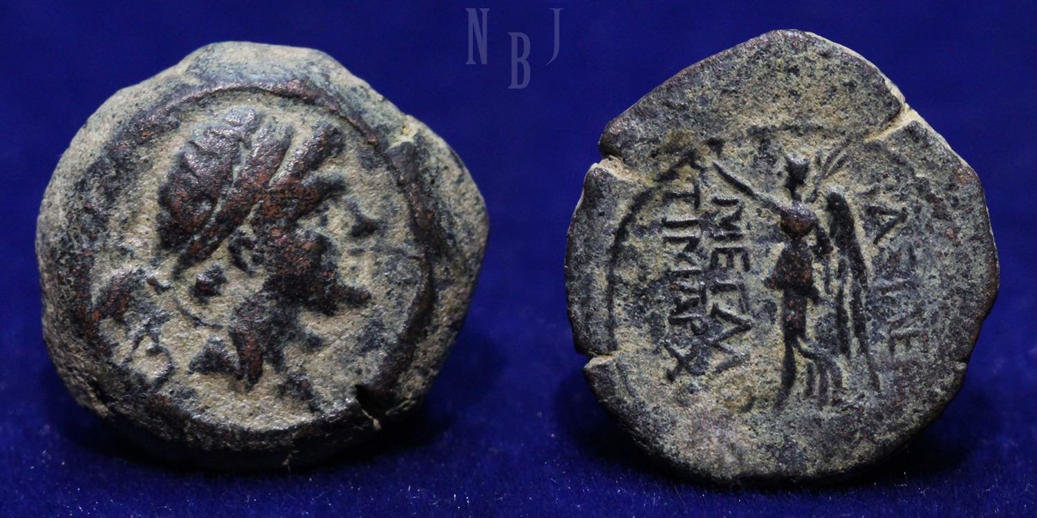 Seleukid Kings: Timarchos (usurper, 164-161 BC). AE Bronze, Ekbatana mint. Diademed head of Timarchos right. Nike advancing left, holding wreath and palm branch. (4.74gm, 17mm) Very Fine and Very Rare.