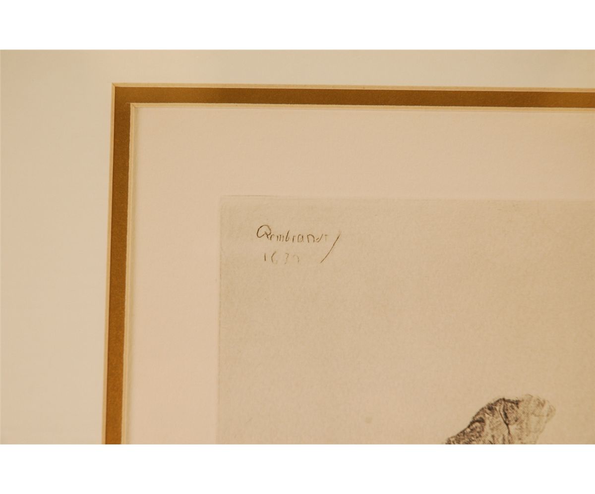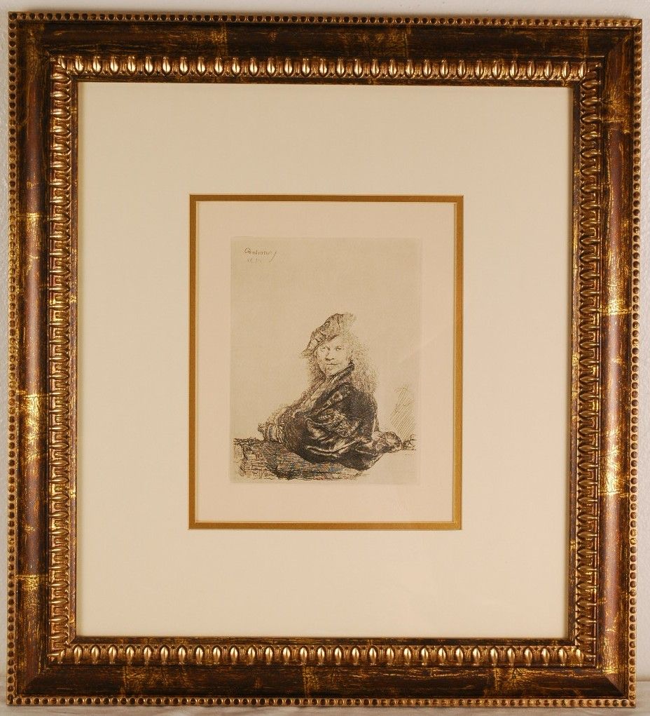 After Rembrant etching of self plate signed and dated 1639. Framed 21" x 23" Etching 6" x 8". By master engraver Armand Durand