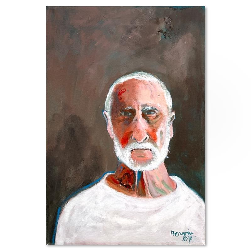 "Self Portrait" is an original painting on stretched canvas by Milton Berwin (1925-2023), hand signed by the artist. Includes Letter of Authenticity. Measures approx. 18" x 12" (image).