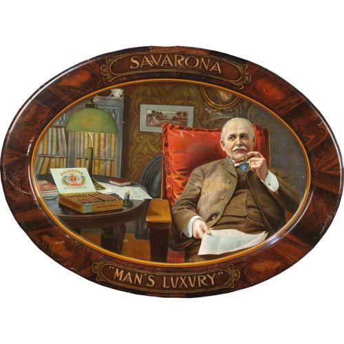 Self framed tin cigar sign Savarona Cigars oval in shape 17" x 22 ½"