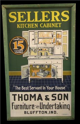 Sellers Kitchen Cabinet tin framed sign 28"x48"