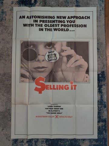 Selling It (Don Walters, 1972) poster. Adult. Starring Laura Cannon, Helen Wood. Directed by Don Walters. Some edge wear, creases, stains. Fine. (27"x41").
