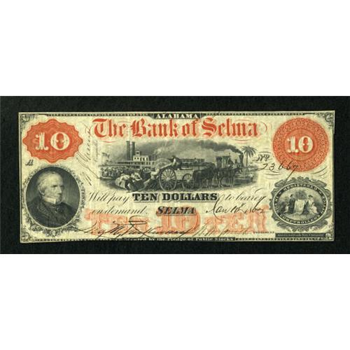 Selma, AL- The Bank of Selma $10 Jan. 18, 1862