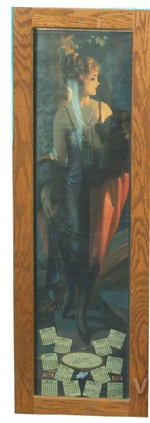 Selz Shoes Advertisement Print w/ 1924 Calendar, w/ metal strip on top & bottom in frame - 13" x 41"