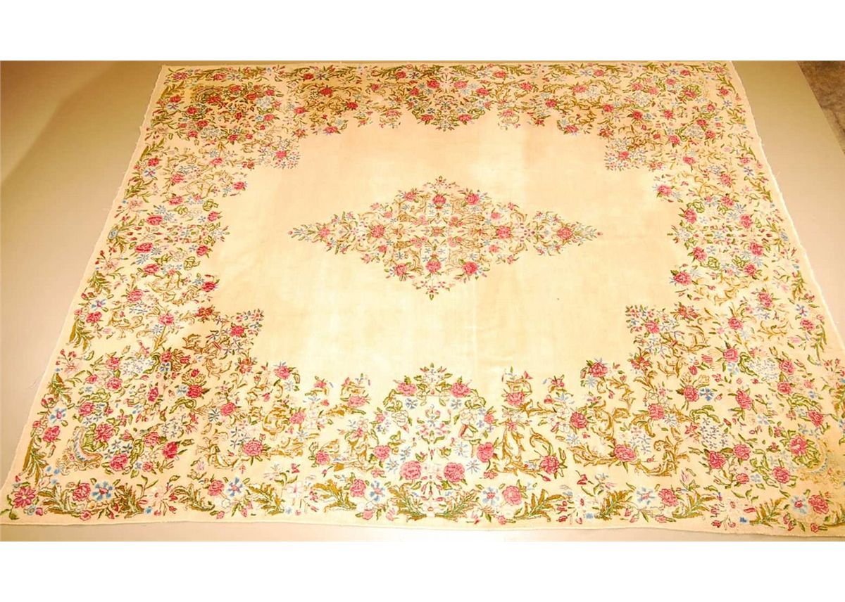 Hand made semi antique Persian Kerman wool rug. 12'4" x 9'9"