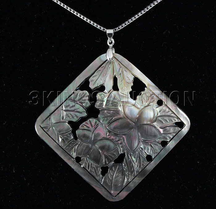 Semi Big 52.36ctw Mother Of Pearl Silver Pendant **|**|** 51.45x52.46mm Mother of Pearl with Flower Hand carved Design Sterling Silver Pendant ; MSRP: $300