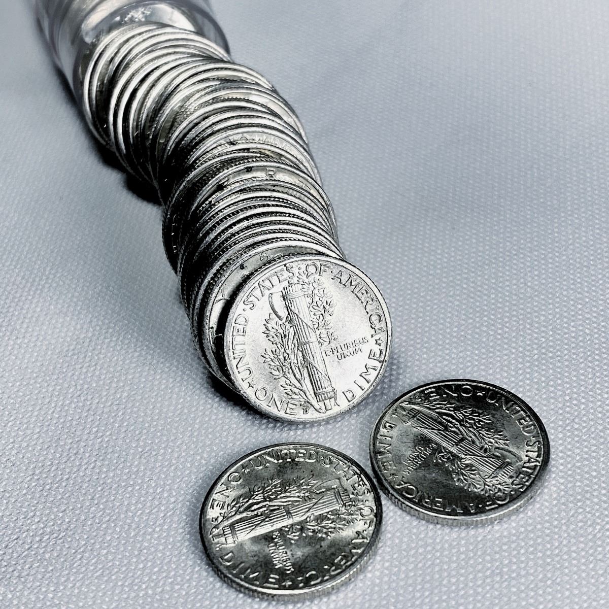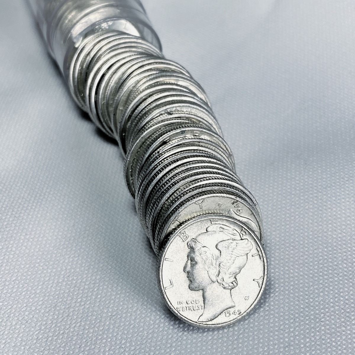 Semi-Key Dates Mercury Silver Dime Roll (29) - BU