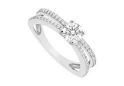 Two split rows of brilliant cut round diamonds with TDW of 0.25 carat are beautifully set in this 14K white gold semi mount engagement ring. Center diamond is not included with our semi mount ring and must be purchased separately. This semi mount ring makes a great addition to any jewelry collection to set your own choice of any round shape center gem. If you supply center stone we will set at no charge. This is perfect way to make ring of your dreams. Also available with bigger center stone.